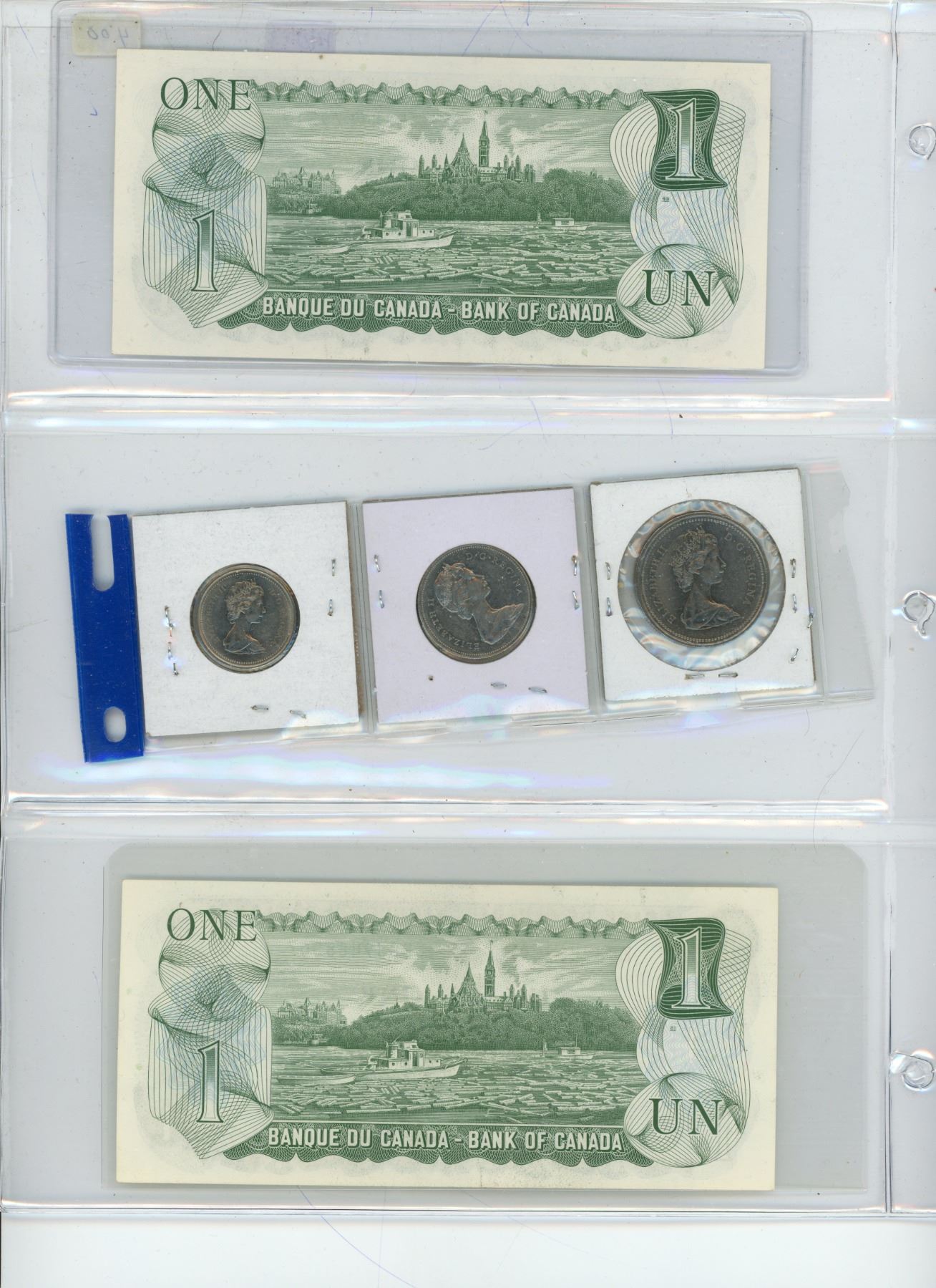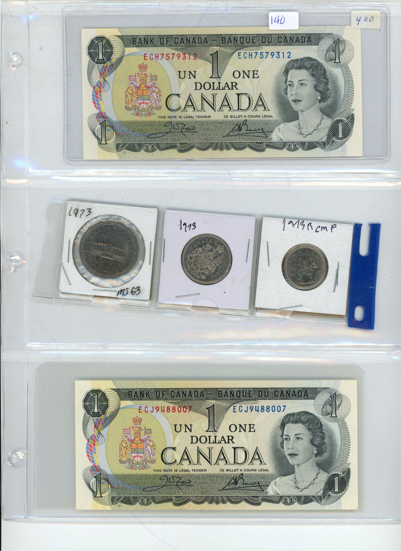 1973 2 X 1$ BILL/1$ COIN/50c COIN/25 c COIN WITH RCMP.