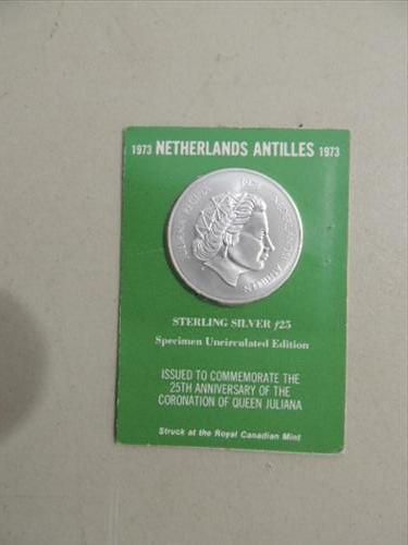 1973 25 GULDEN STERLING SILVER NETHERLAND ANTILLES COIN. 1.25 OZ. AS SHOWN. VIEW PICTURE FOR DETAIL.