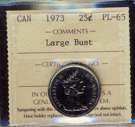 1973 25¢ Large Bust ICCS PL65.