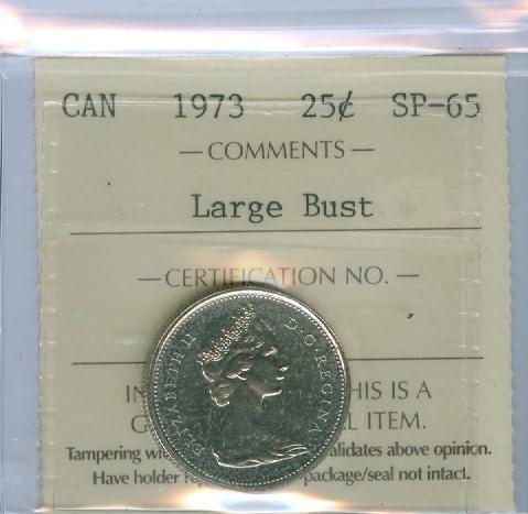 1973 25¢ Large Bust ICCS SP65.