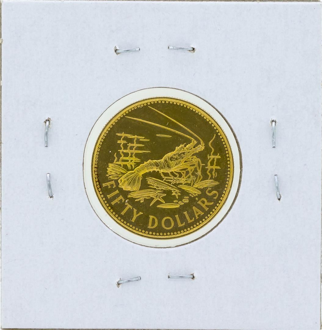 One 1973 $50 Commonwealth of the Bahamas Gold Proof Coin.