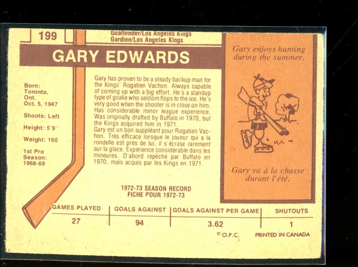 1973-74 O-Pee-Chee #199 Gary Edwards