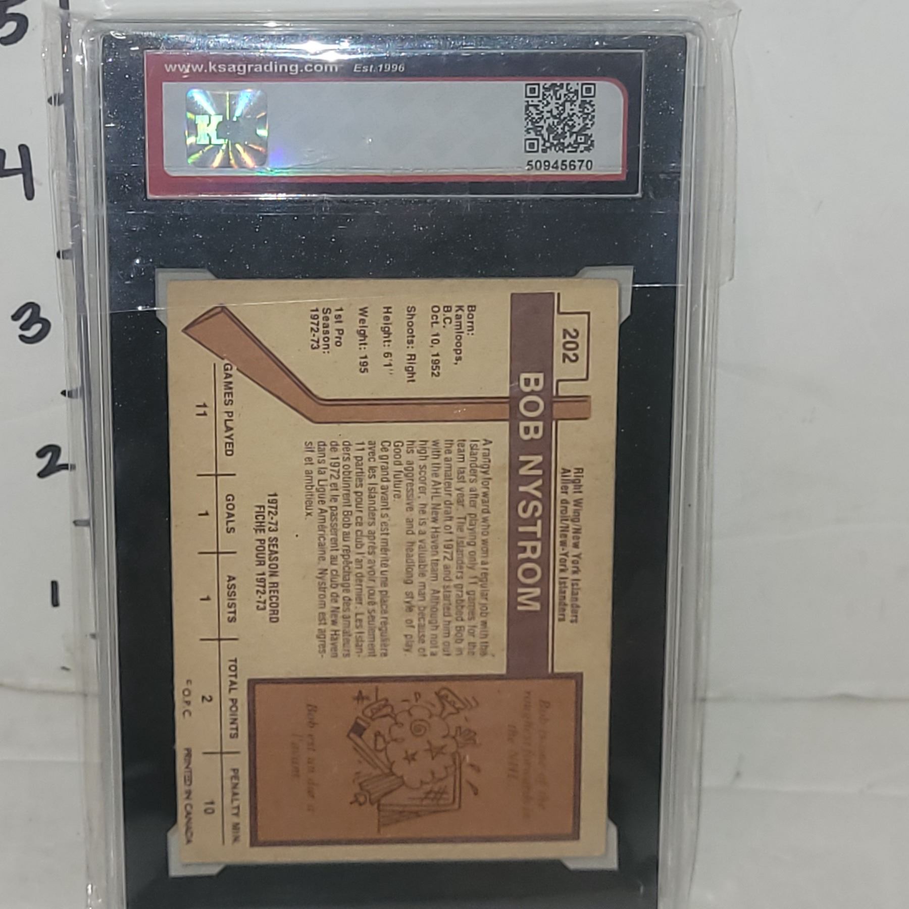 1973-74 O-Pee-Chee #202 Bob Nystrom Rookie Card - Graded 4.5 VGE+ KSA