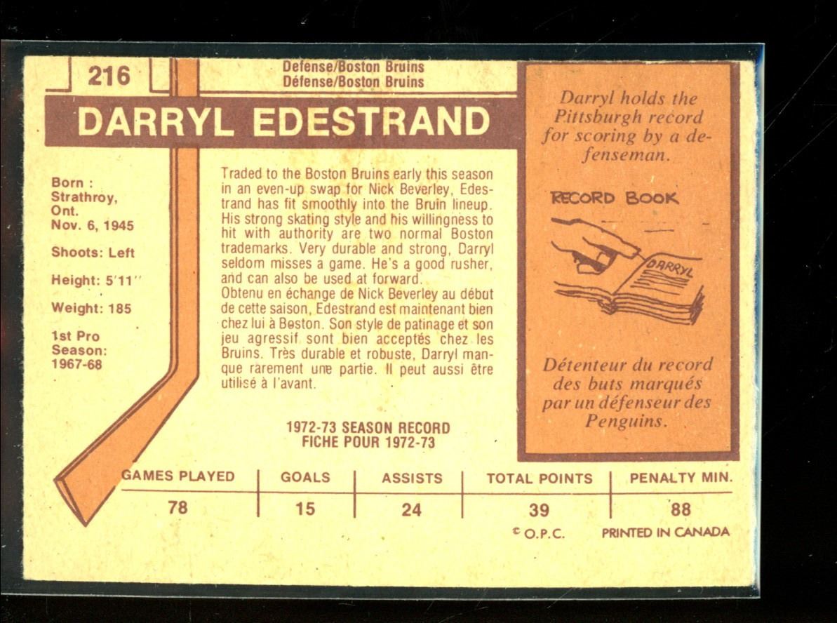 1973-74 O-Pee-Chee #216 Darryl Edestrand