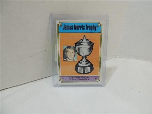 1973-74 TOPPS #248 HOCKEY NORRIS TORPHY CARD: BOBBY ORR. AS SHOWN. VIEW PICTURE FOR DETAIL.