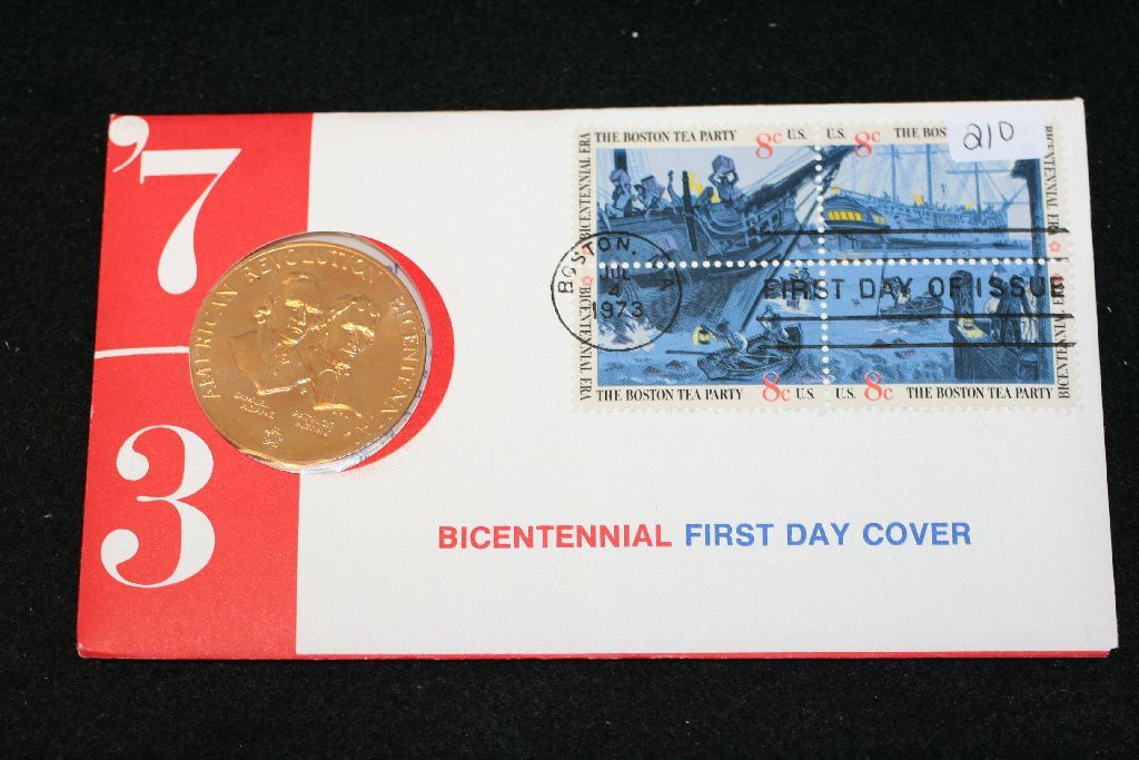 1973 American Revolution Bicentennial First Day Cover Samuel Adams & Patrick Henry Commerative Medal W/Postal Stamps