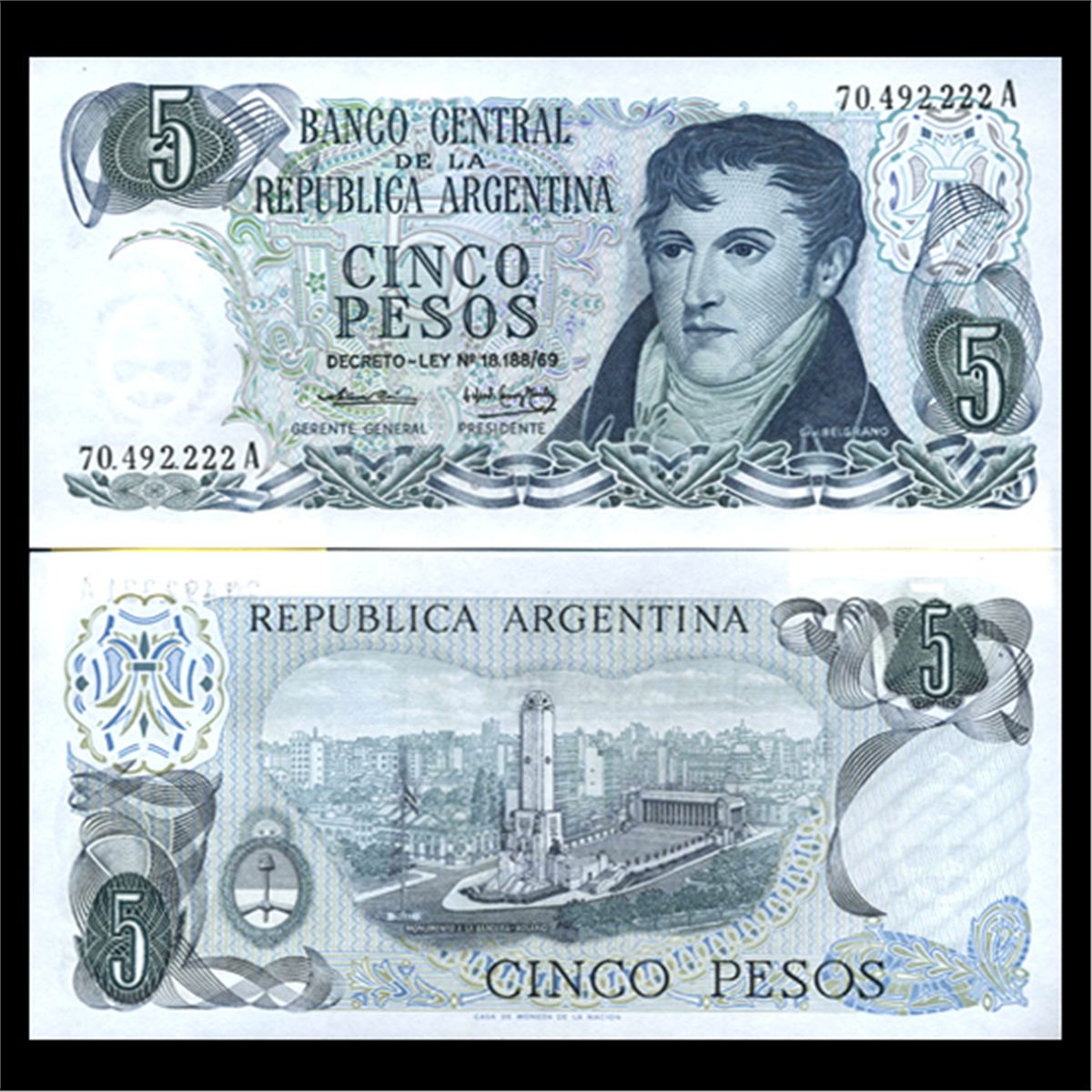 1973 Argentina 5 Peso Note Crisp Uncirculated (CUR-05949)
