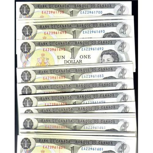1973 One Dollar Crow-Bouey, BC-46b, 100 Consecutive Serial Numbers EAZ2961601 to EAZ2961700, including Radar 2961692, all Uncirculated