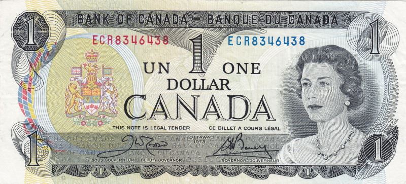 1973 Bank Of Canada $1 Radar Note - 8346438 Serial - Crow/Bouey - Trends Value $20