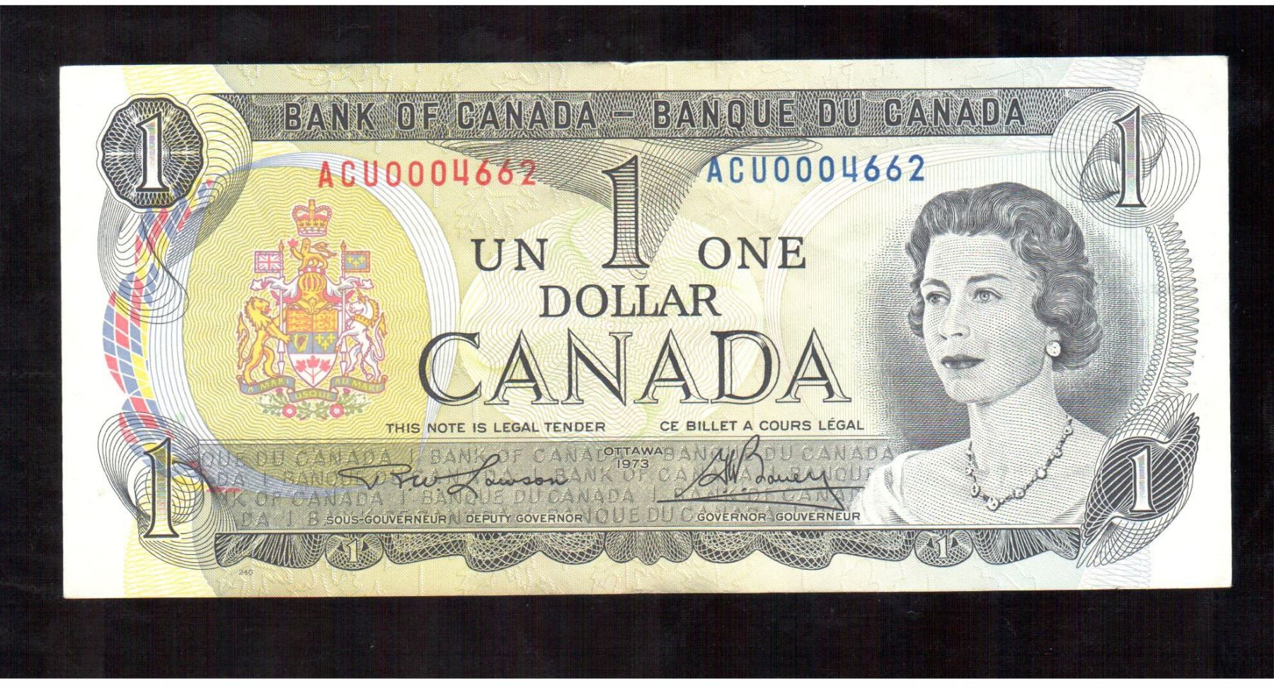 Lot 120; Dates Include 1973, $1 Bank of Canada Note, Lawson-Bouey, ACU Prefix, VF-EF