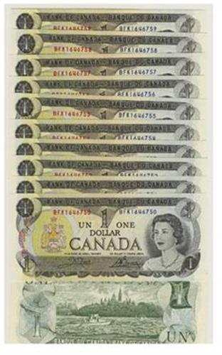 Crisp unc sequential run of 10 notes, BFK1646750-1646759. Crow-Bouey variety BC-46b, no return.