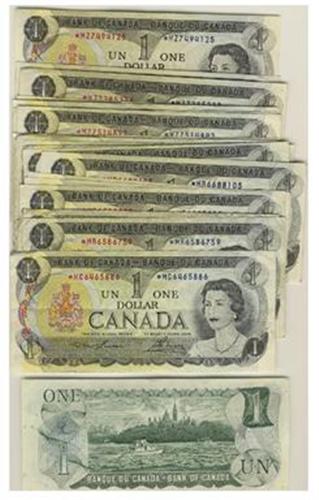 Lot of 27 asterisk replacement notes average circulated condition VG-EF. No torn pieces, creasing and folds with some soiling from handling and a couple notes have a pen mark. Miscellaneous serial numbers, Lawson-Bouey with prefixes *MC; *MR; and *MZ. BC-