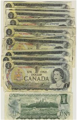 16 asterisk replacement notes, average circulated VG to VF. Various serial numbers, prefixes *AA and *AL, no return.