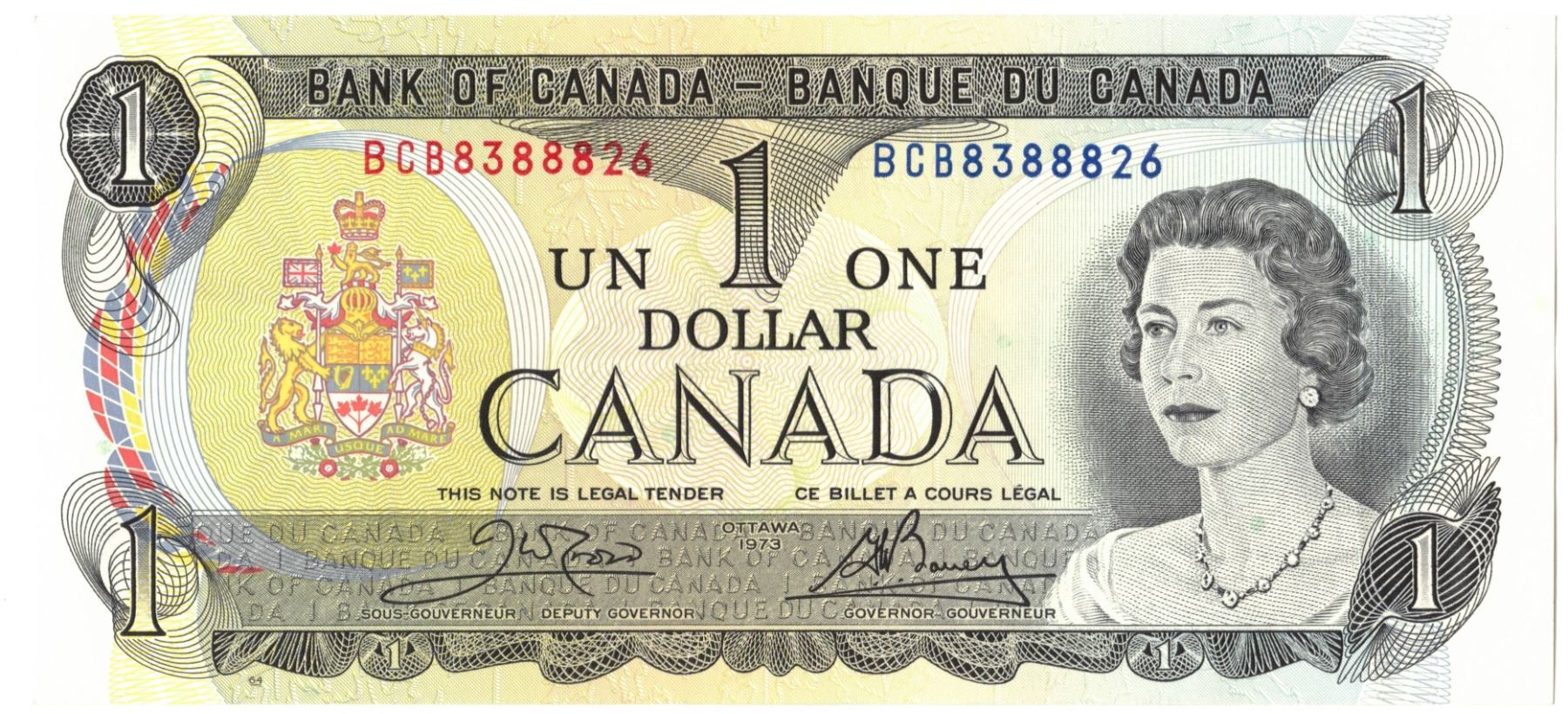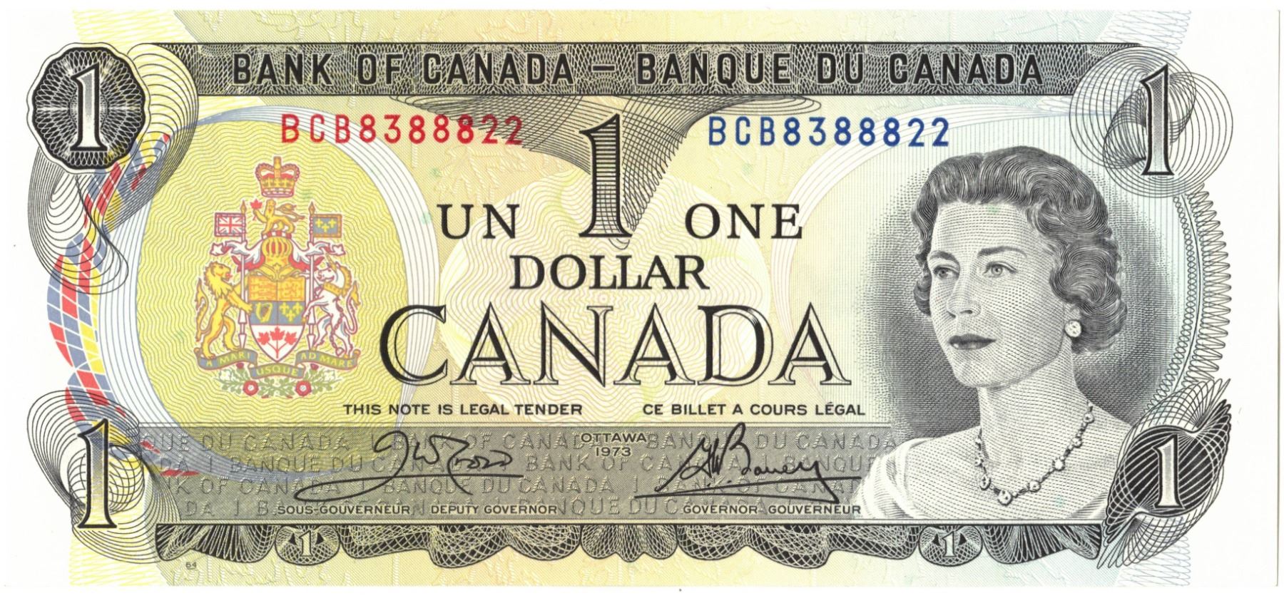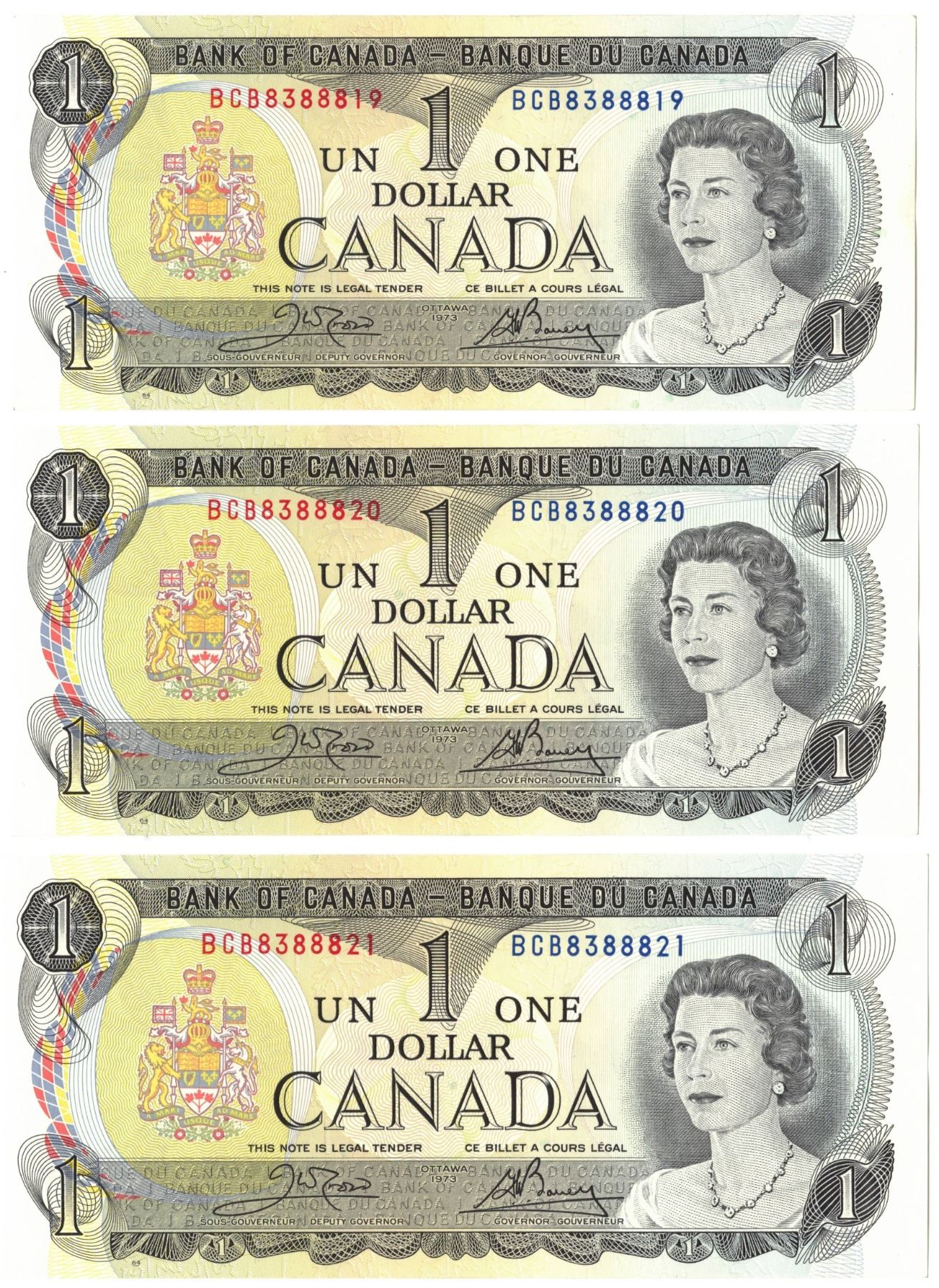 1973 Bank of Canada One Dollar Bills - EIGHT CONSECUTIVE