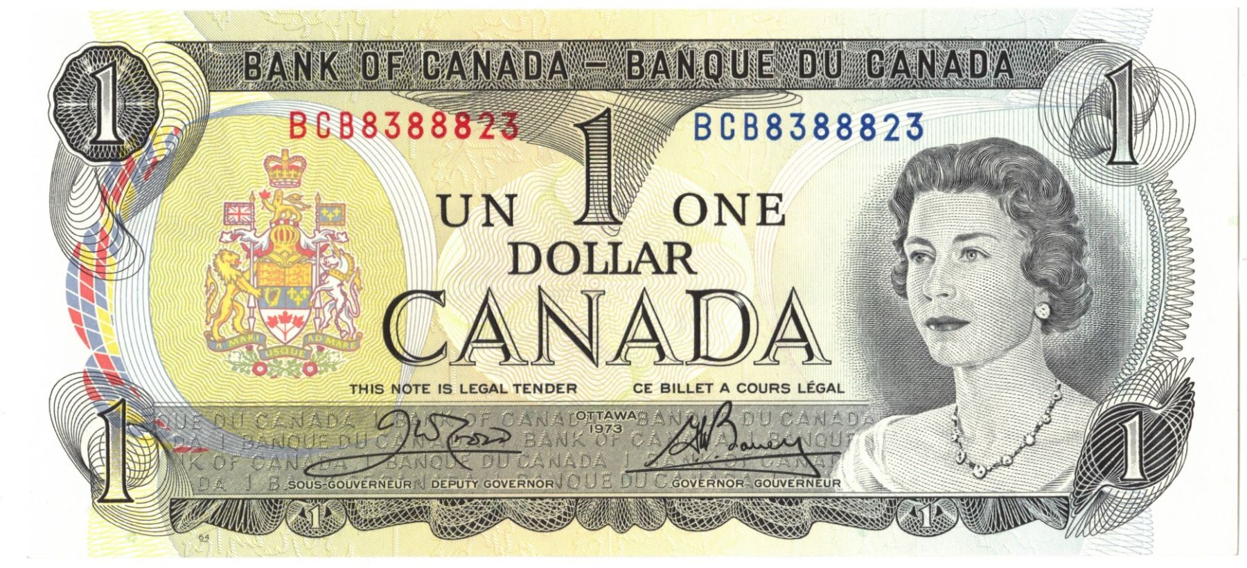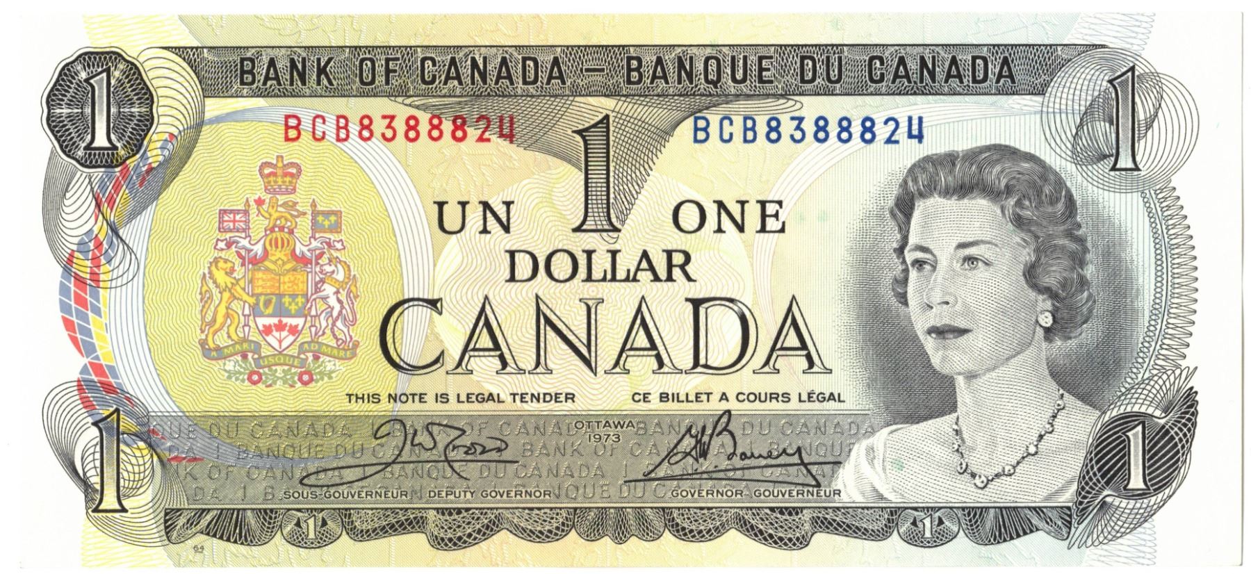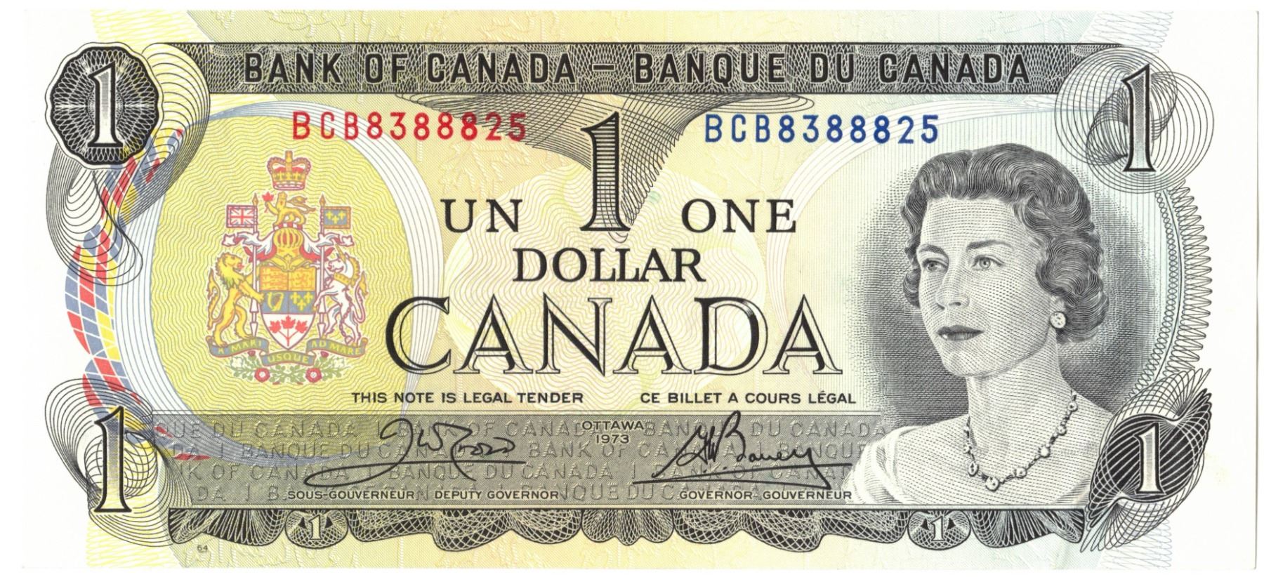 1973 Bank of Canada One Dollar Bills - EIGHT CONSECUTIVE