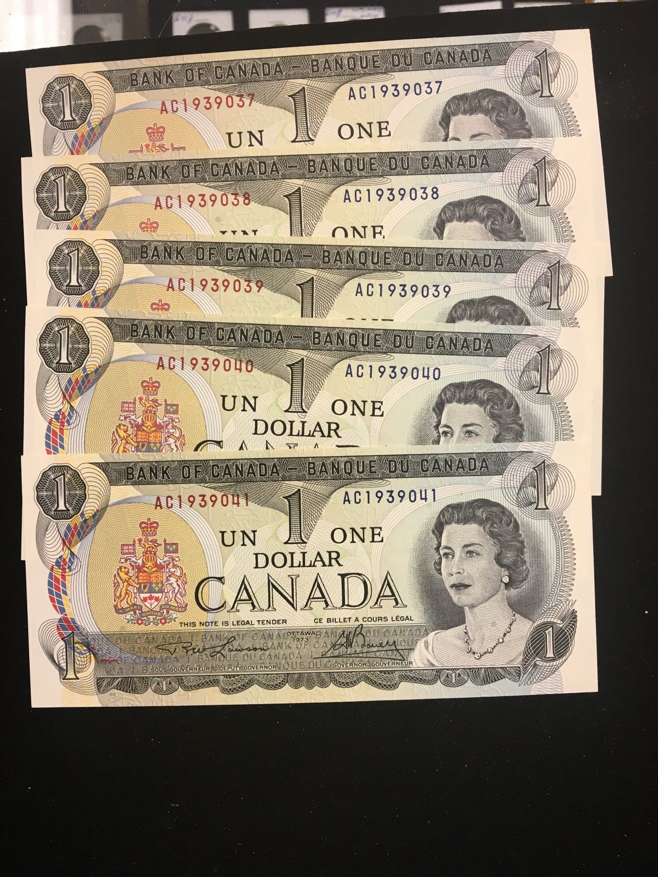 NICE LOT OF 5 CHOICE UNC NOTES IN SEQUENCE.
