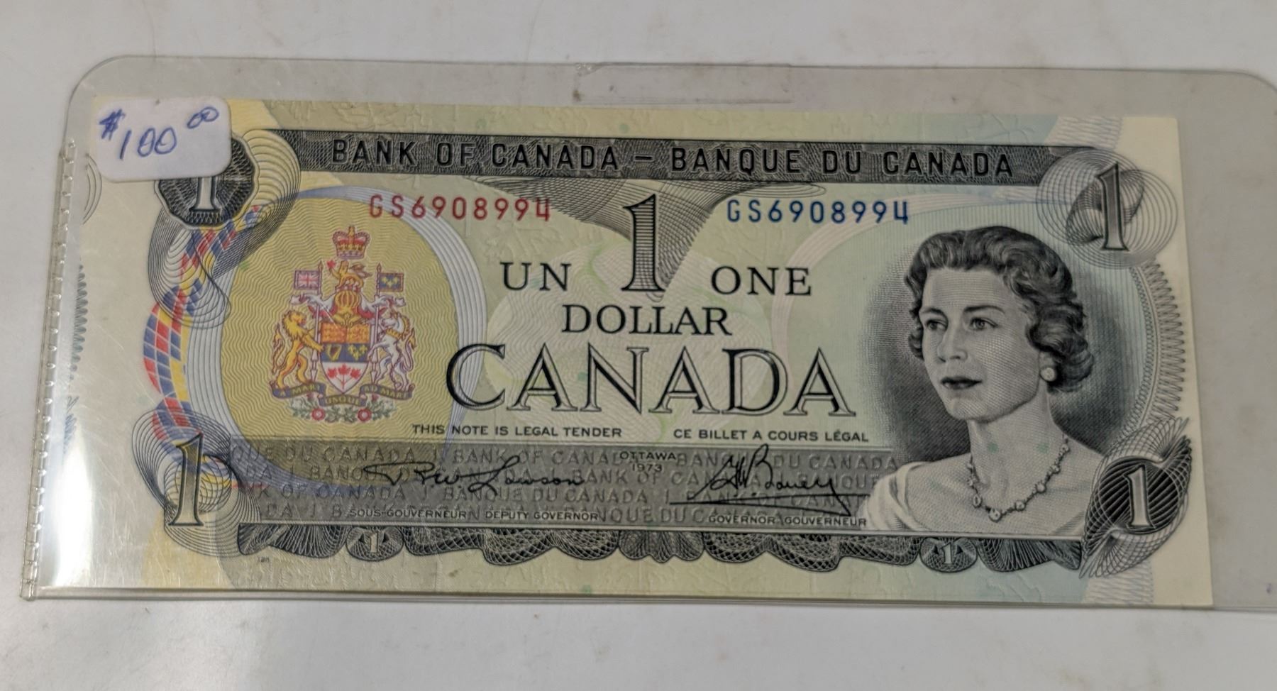 1973 CANADA $1 BANKNOTE PRINT OUT OF REGISTER