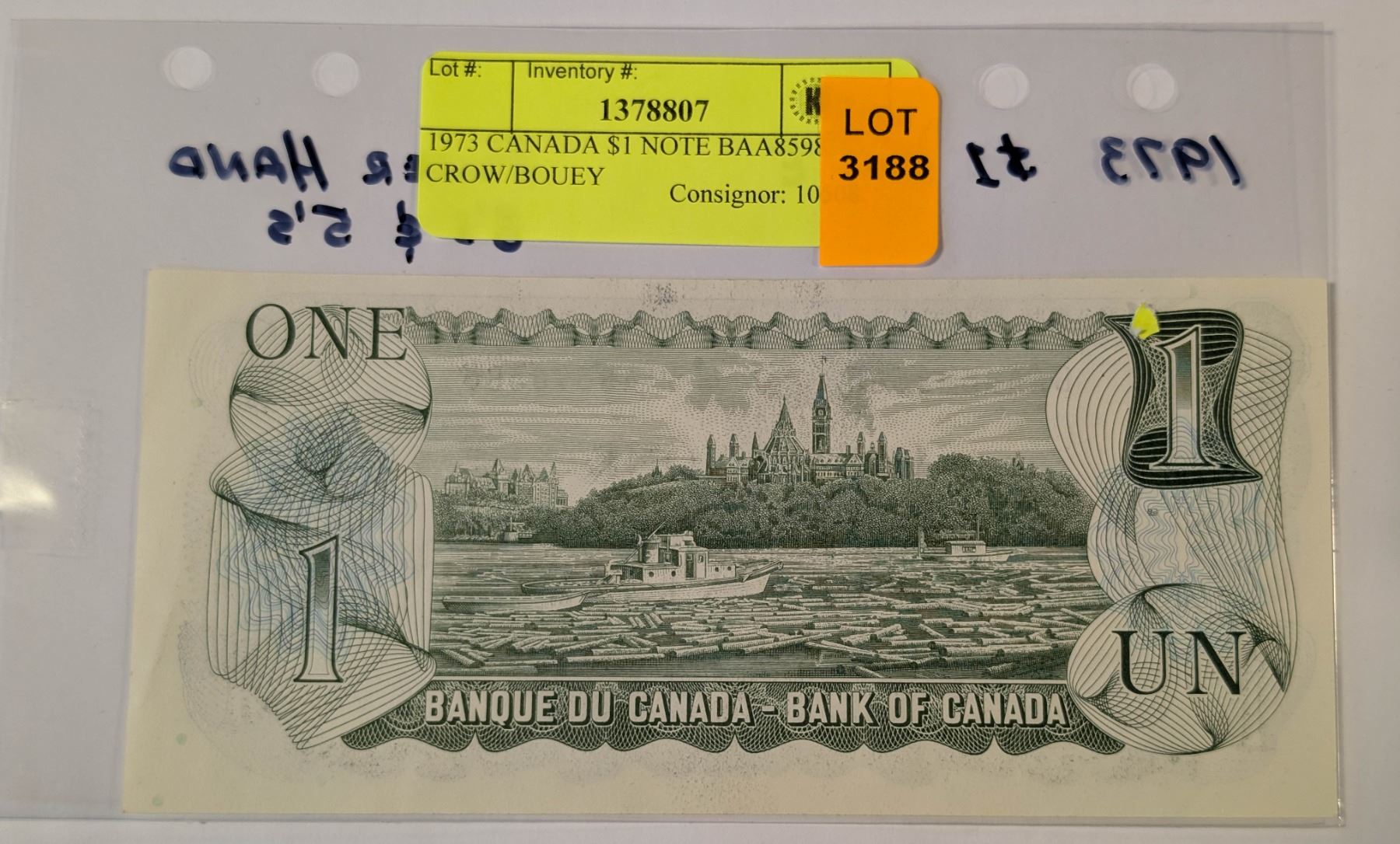 1973 CANADA $1 NOTE BAA8598585 CROW/BOUEY