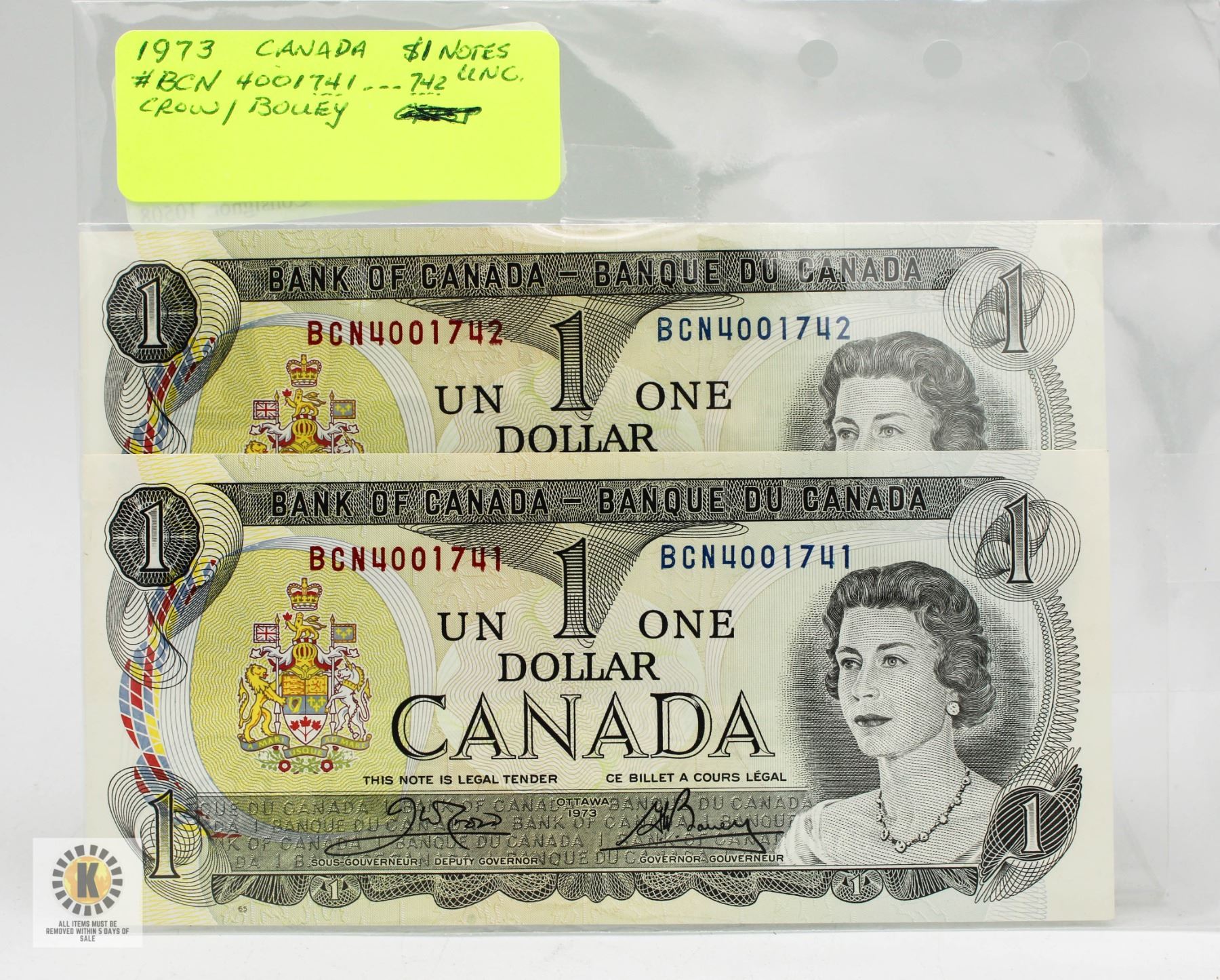 1973 CANADA $1 NOTES. BANK OF CANADA,