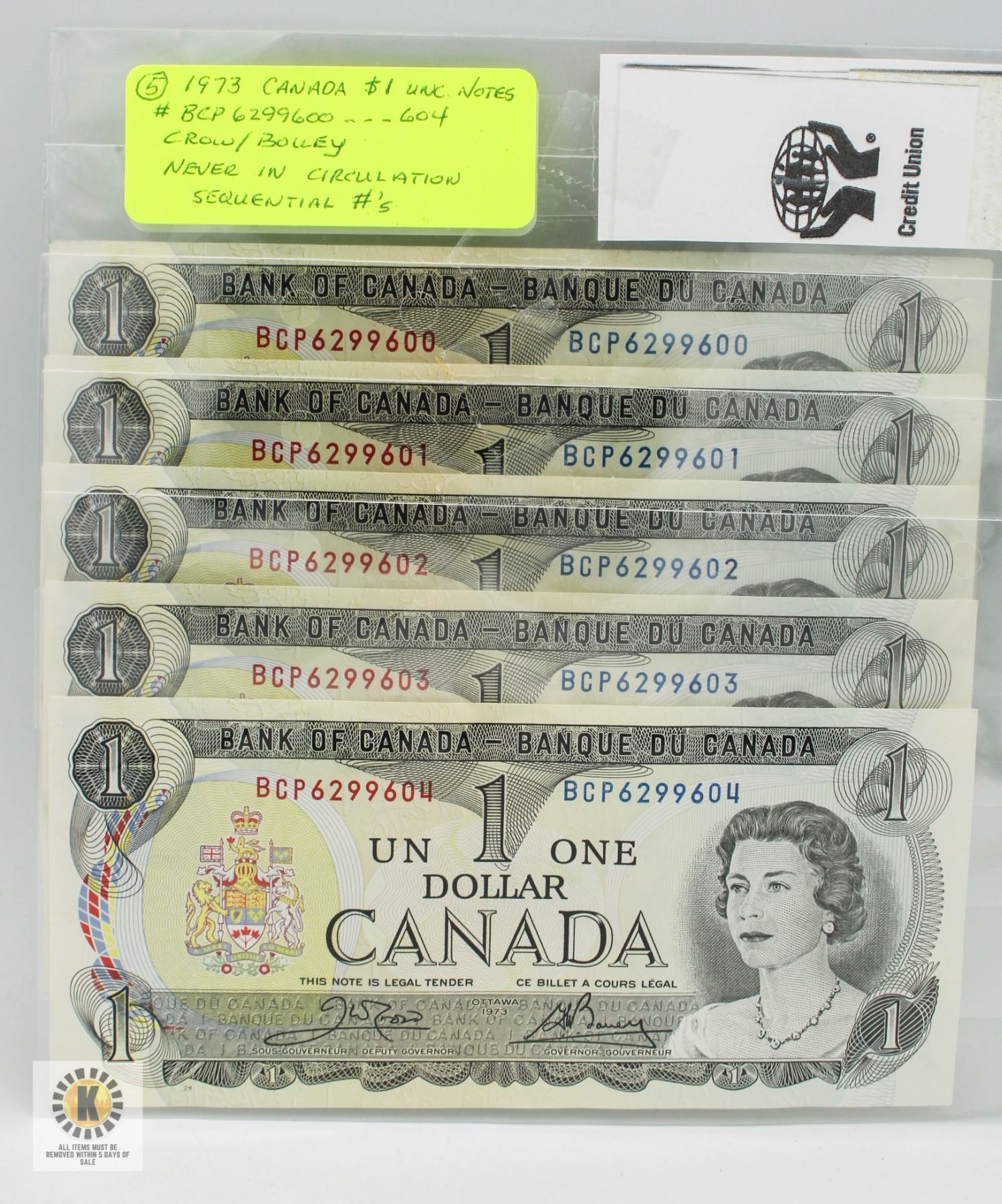 1973 CANADA 5X $1 NOTES. BANK OF CANADA,