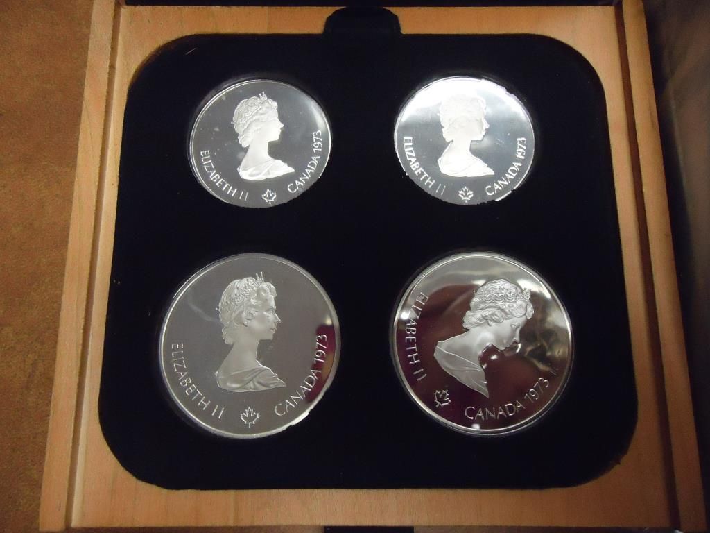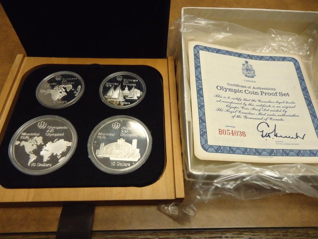 CONTAINS: 2-$5 AND 2-$10 COINS OF THE MONTREAL 1976 OLYMPICS, ORIGINAL ROYAL CANADIAN MINT PACKAGING