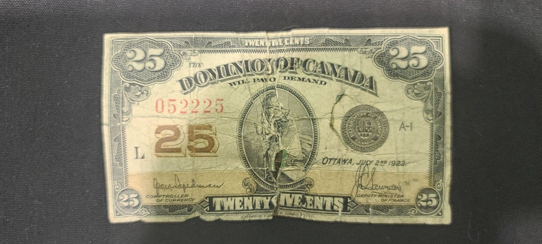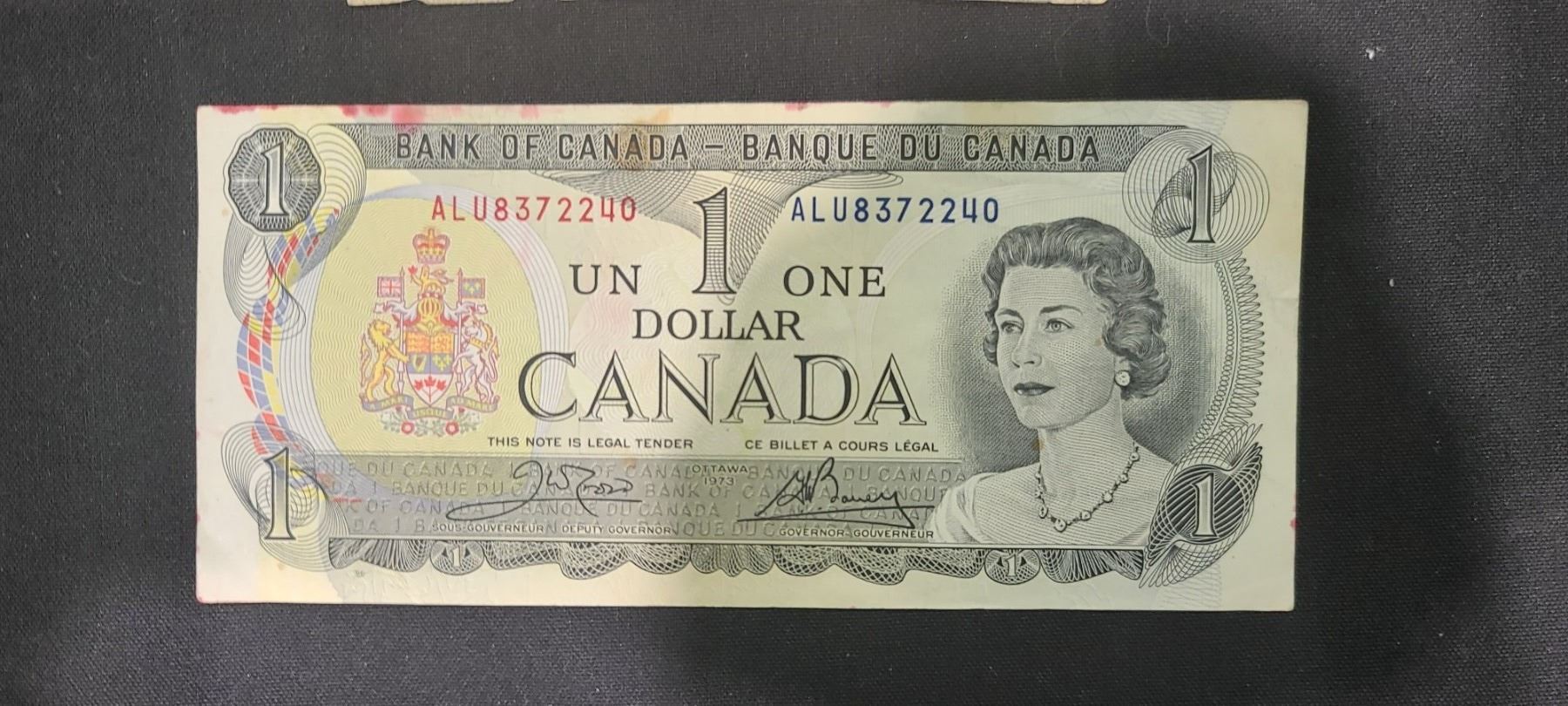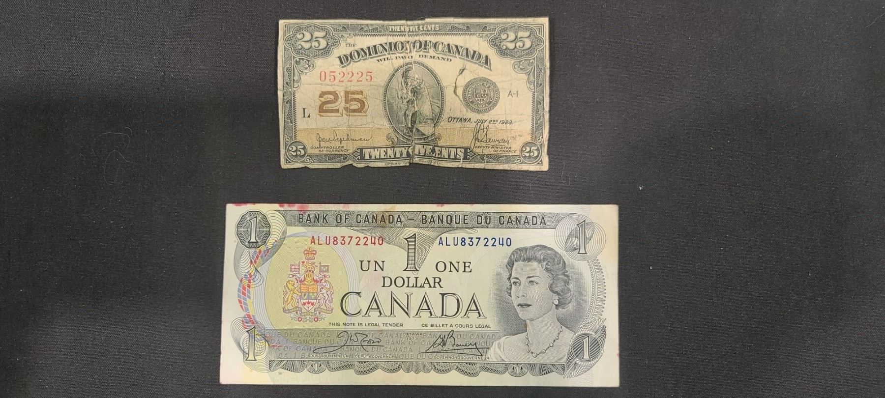 1973 CANADIAN $1 PLUS CANADIAN .25c BILL (SHIN PLASTER)