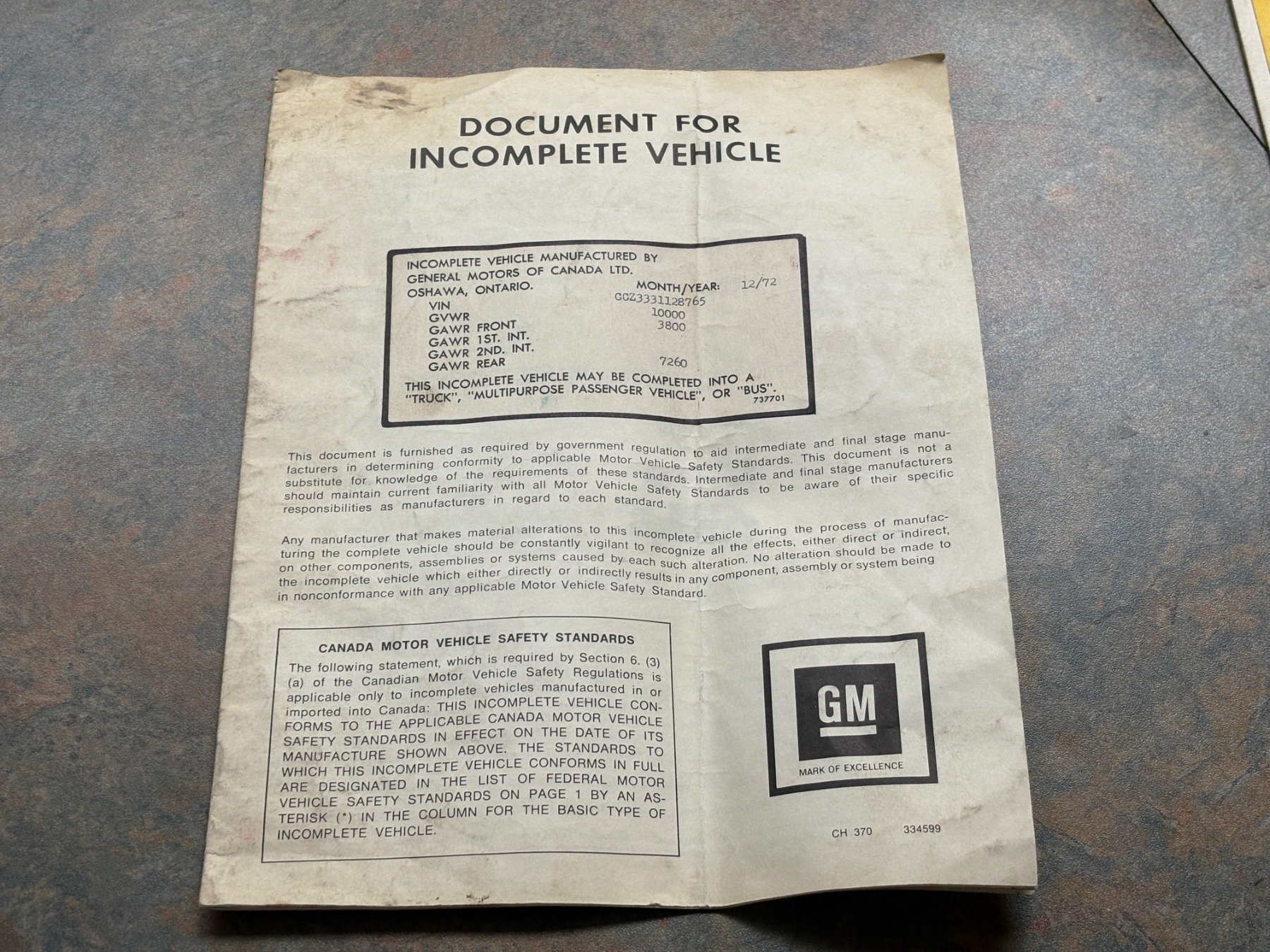 Including factory, 1973 light duty truck GM manual