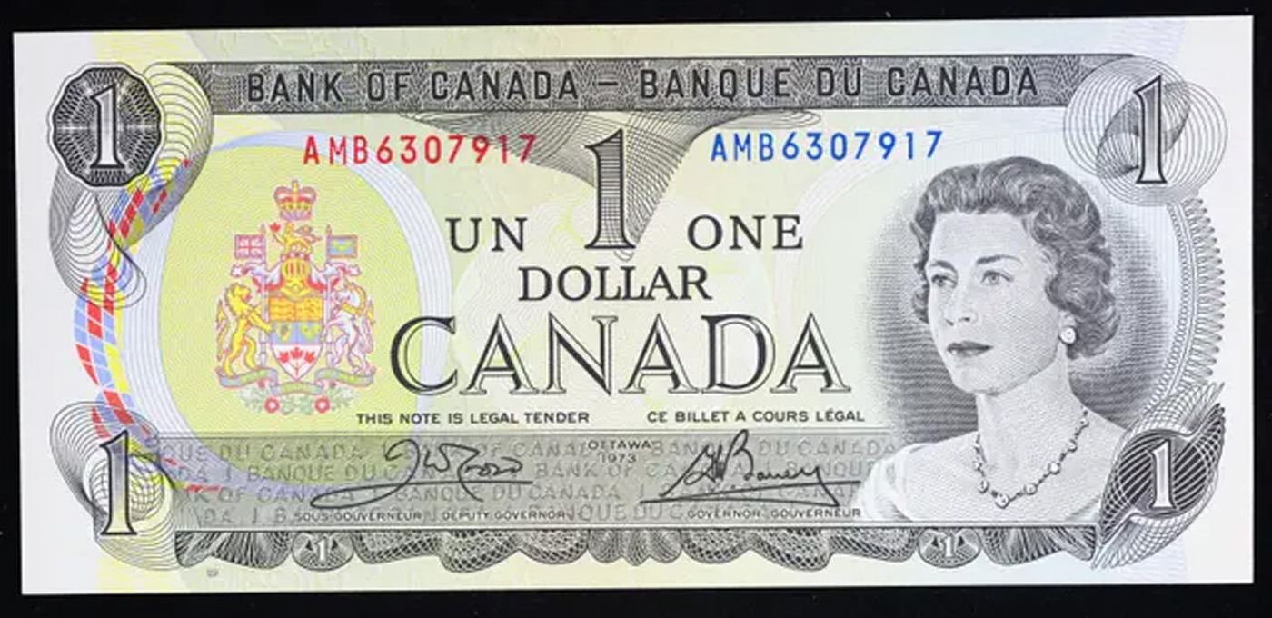 1973 Canada 1 Dollar Note P# 85C Grades Choice CU.