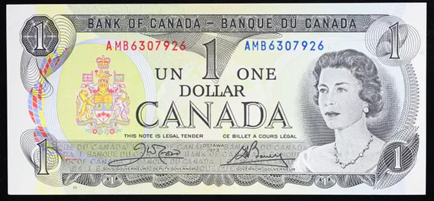 1973 Canada 1 Dollar Note P# 85C Grades Choice CU.