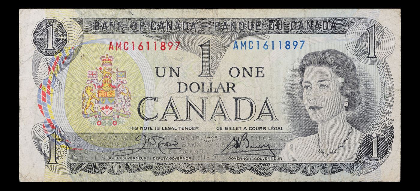 1973 Canada 1 Dollar Note P: 85C Grades vf+.