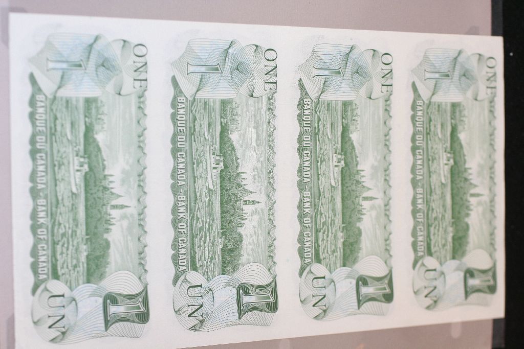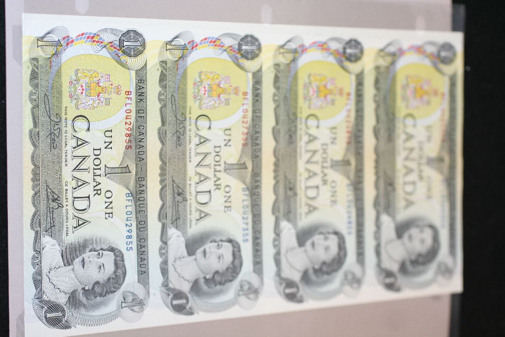 1973 Canada $1 Foreign Bank Note; Lot of 4; Uncut Bills