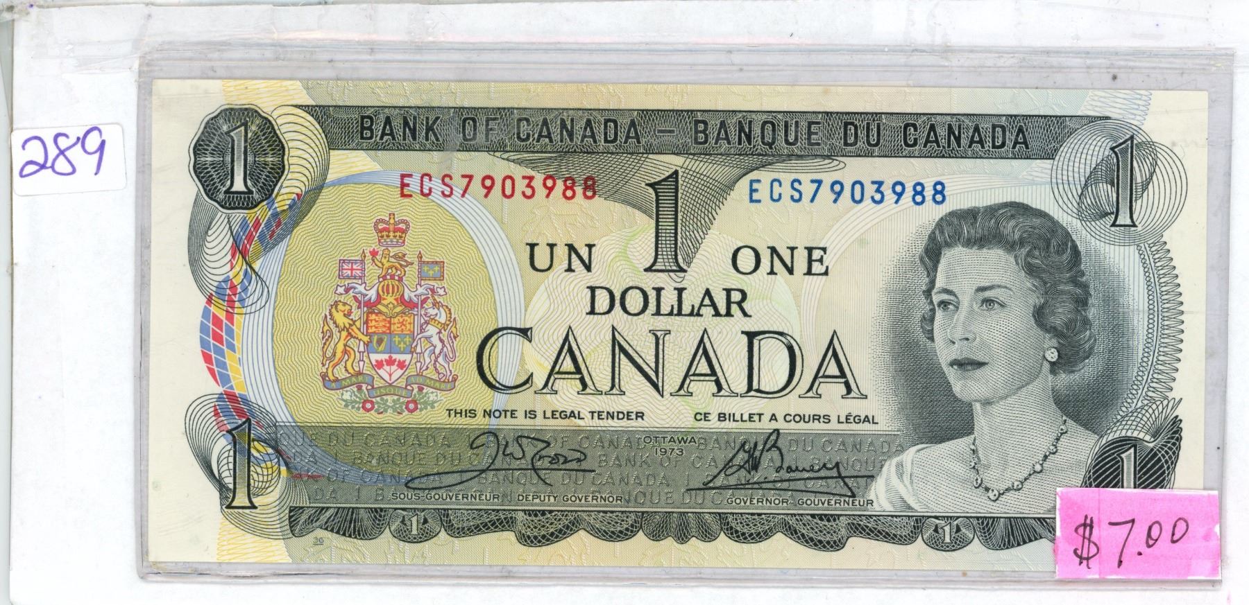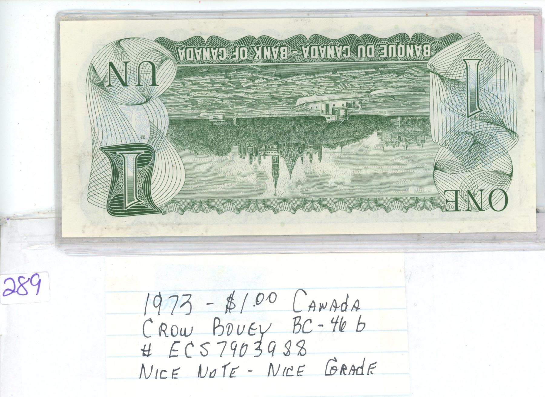 1973 Canadian $1.00 One Dollar Bill Crow-Bouey signatures