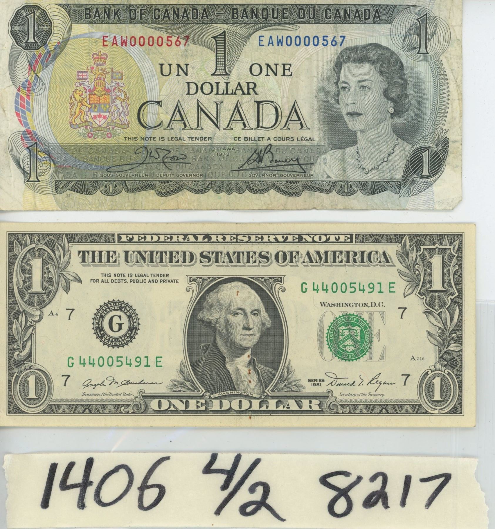 1973 Canadian $1 Bill and 1981 American $1 Bill
