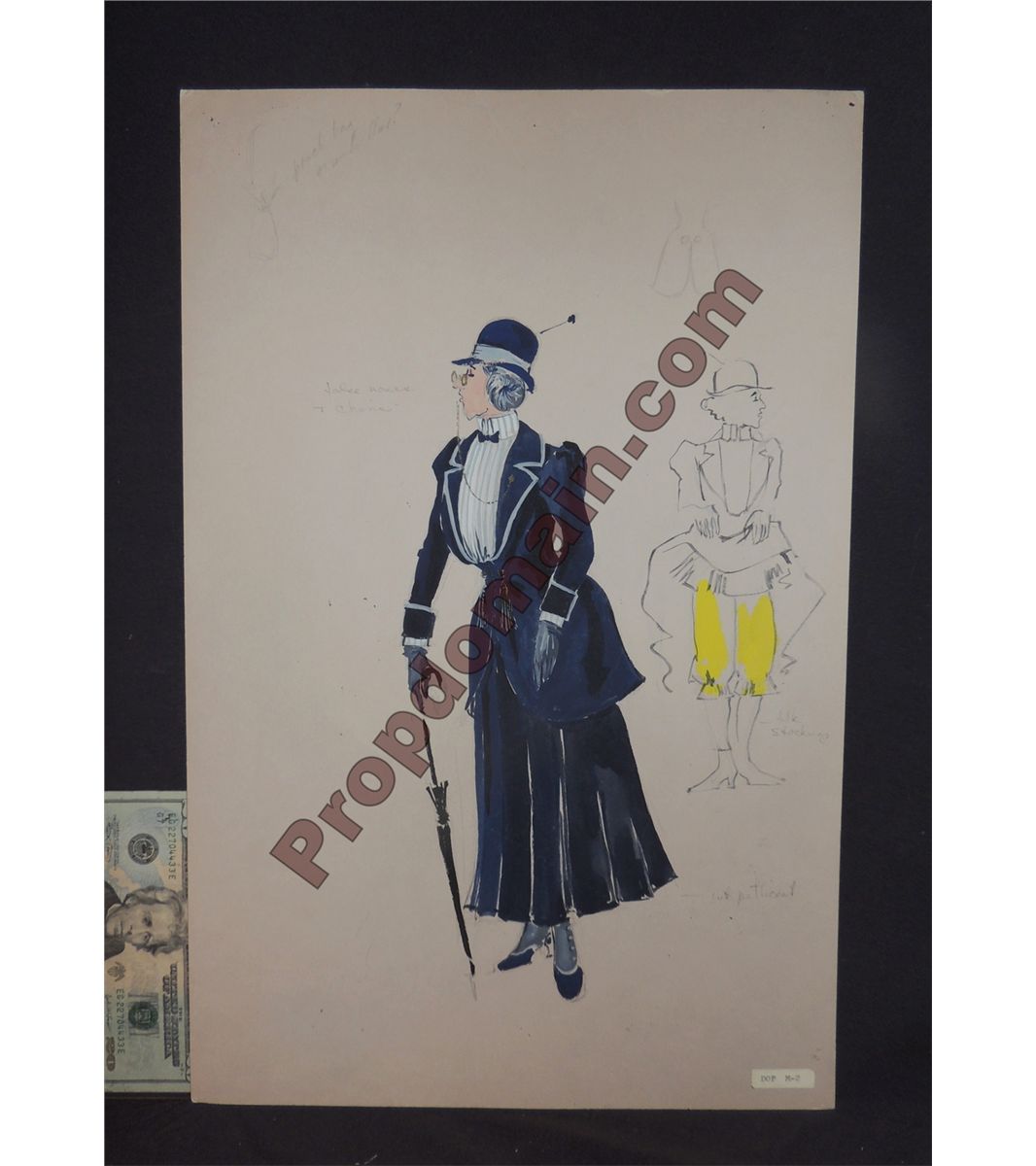 This one is of the Mary Poppins costume for the Mary Poppins stage performances. It has numerous pencil notes by the artist, and a secondary sketch on the front showing her lifting her dress to reveal her bloomers. There is also another full sketch of another wardrobe on the backside. This one piece is not only a famous Disney character, but has a lot to offer otherwise!