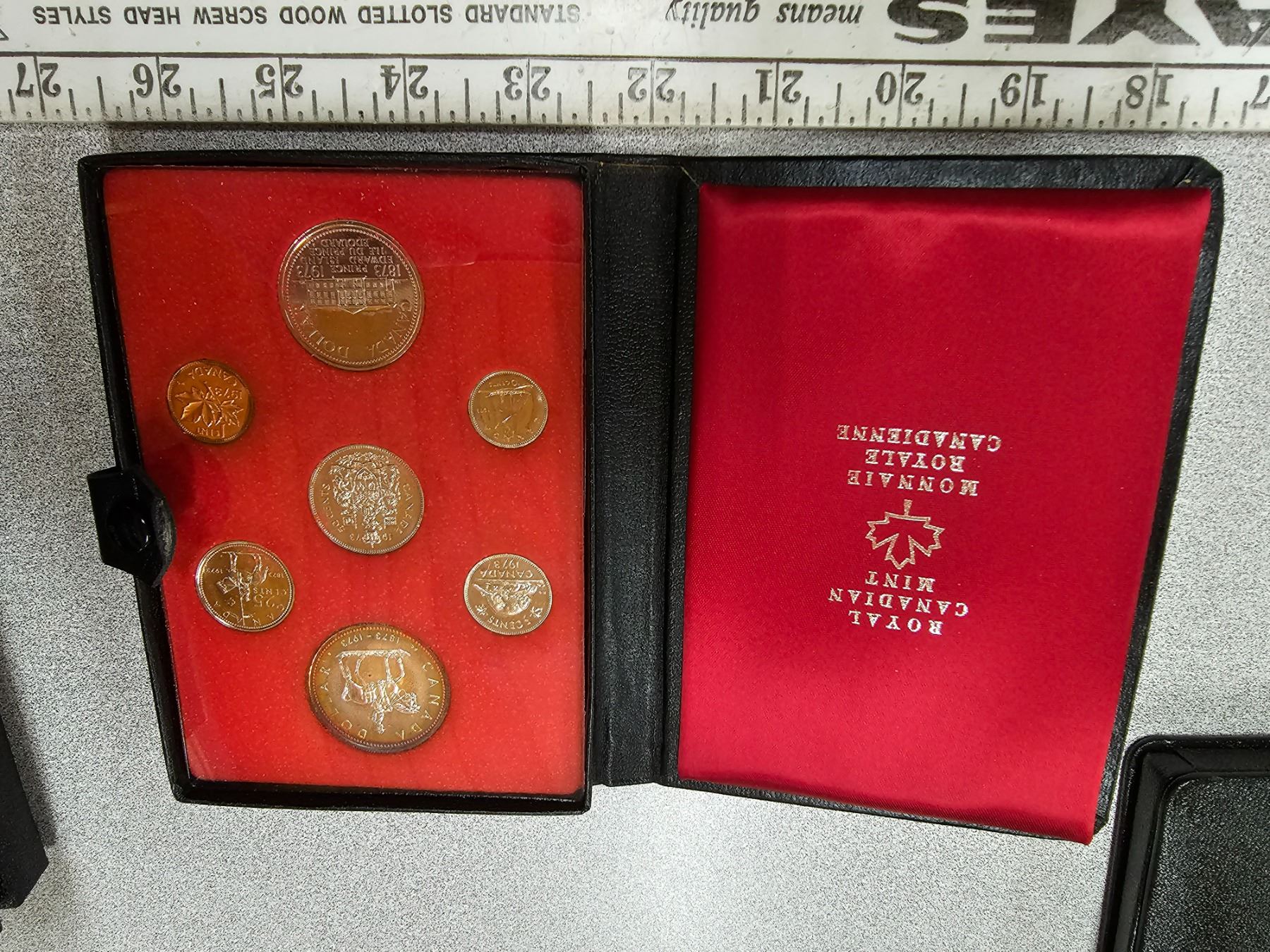 1973 Double Dollar Silver Specimen Set. 7-coin set includes Silver RCMP Centennial Silver Dollar. Housed in its original black case of issue. Silver Dollar is nicely toned.