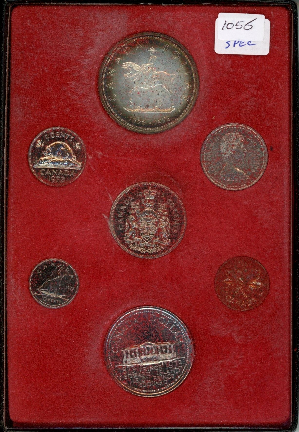 1973 Double Dollar Specimen Set. 7-coin set includes Silver RCMP Centennial Silver Dollar.