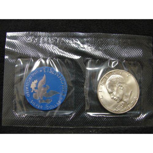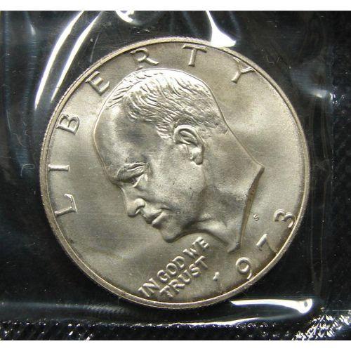 1973 U.S. EISENHOWER SILVER DOLLAR. Unc. In original packaging and envelope.