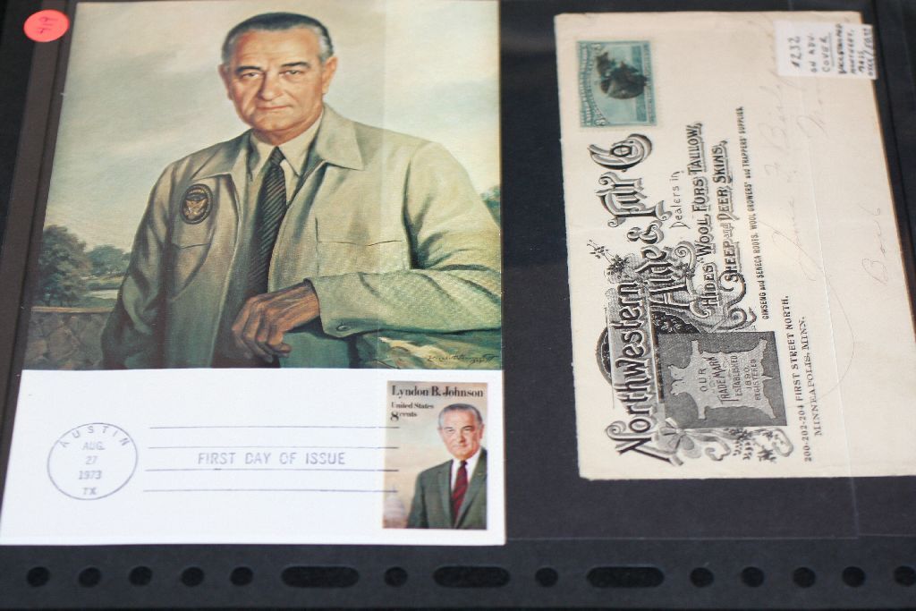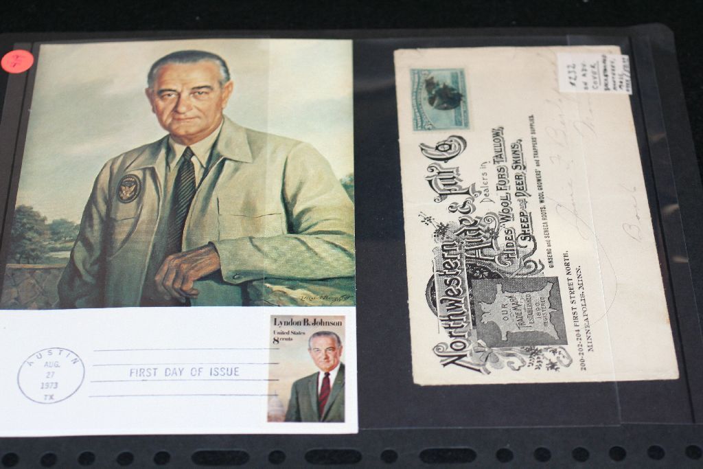 1973 First Day Issue LBJ Post Card W/Postal Stamp & Northwestern Aide & Fur Co Envelope W/Postal Stamp