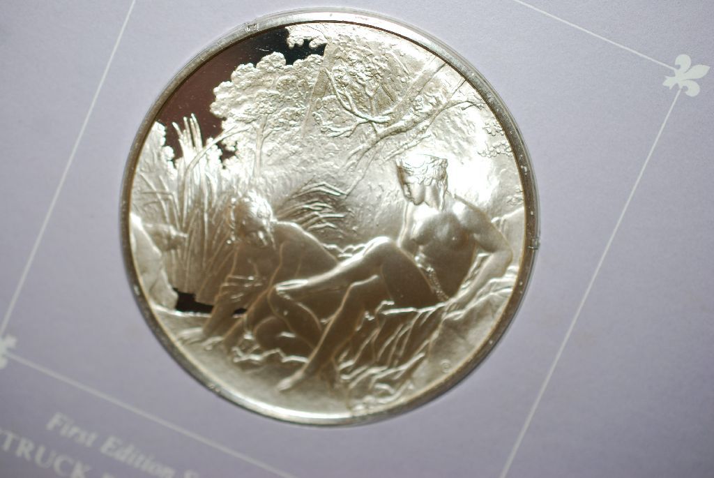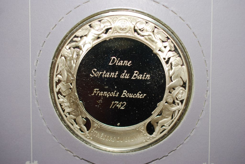1973 Franklin Mint Treasures Of The Louvre First Edition Solid Sterling Silver Proof "Diane Sortant Du Bain (Diana Resting After Her Bath) 1742 Boucher"; Sterling 1+ Oz.; EST. $40-60
