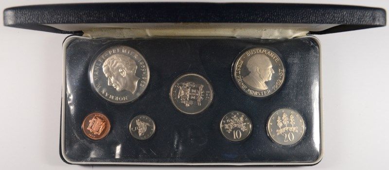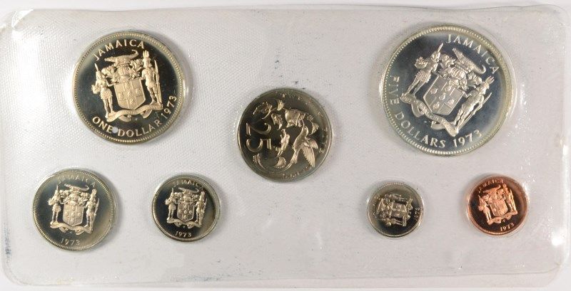 1973 JAMAICA PROOF SET WITH SILVER , IN ORIGINAL CASE