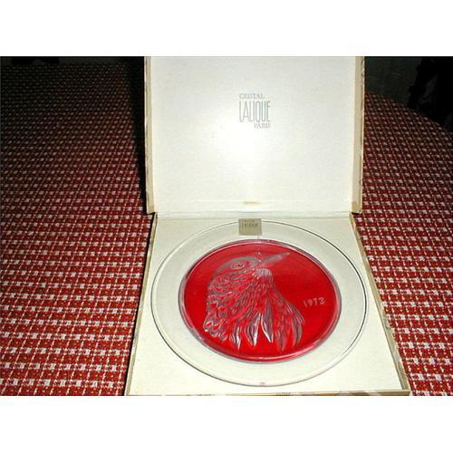 THIS SALE IS FOR ONE OF LALIQUES CRYSTAL PLATES THAT STILL HAS THE ORIGINAL STICKER AND COMES IN ITS ORIGINAL BOX. THIS PLATE MEASURES 8 1/2 IN. IN DIAMETER AND IS IN WONDERFUL CONDITION WITH NO CHIPS, CRACKS, CLOUDINESS, SCRATCHES, OR REPAIRS.