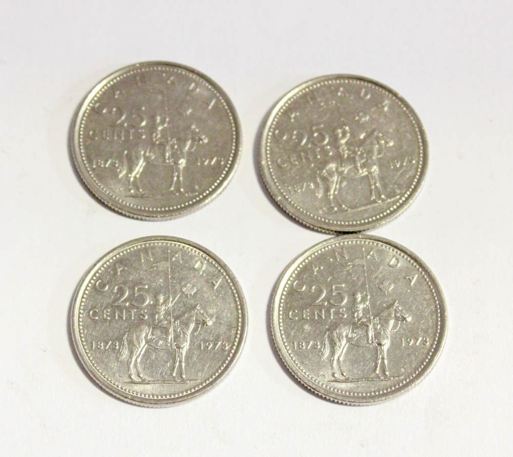 1973 LOT OF 4 "RCMP" CANADA 25 CENTS COINS