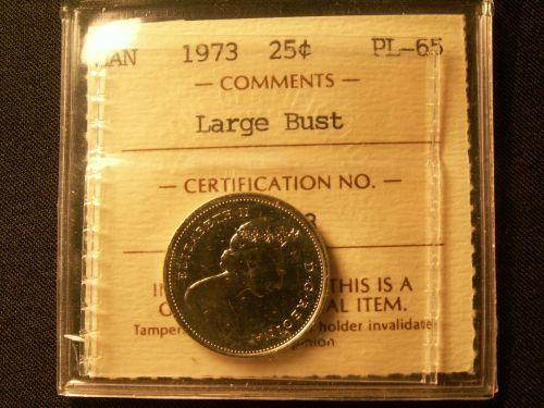 1973 Large Bust variety 25¢ ICCS PL65. A nice example with reflective fields.