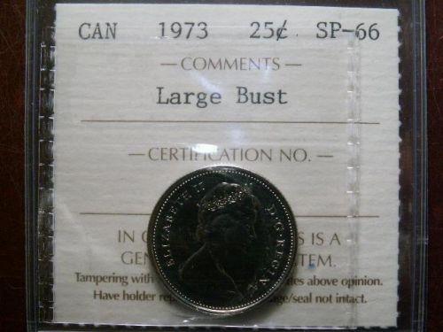 1973 "Large Bust variety" 25¢ ICCS SP66. A nice example with reflective fields.