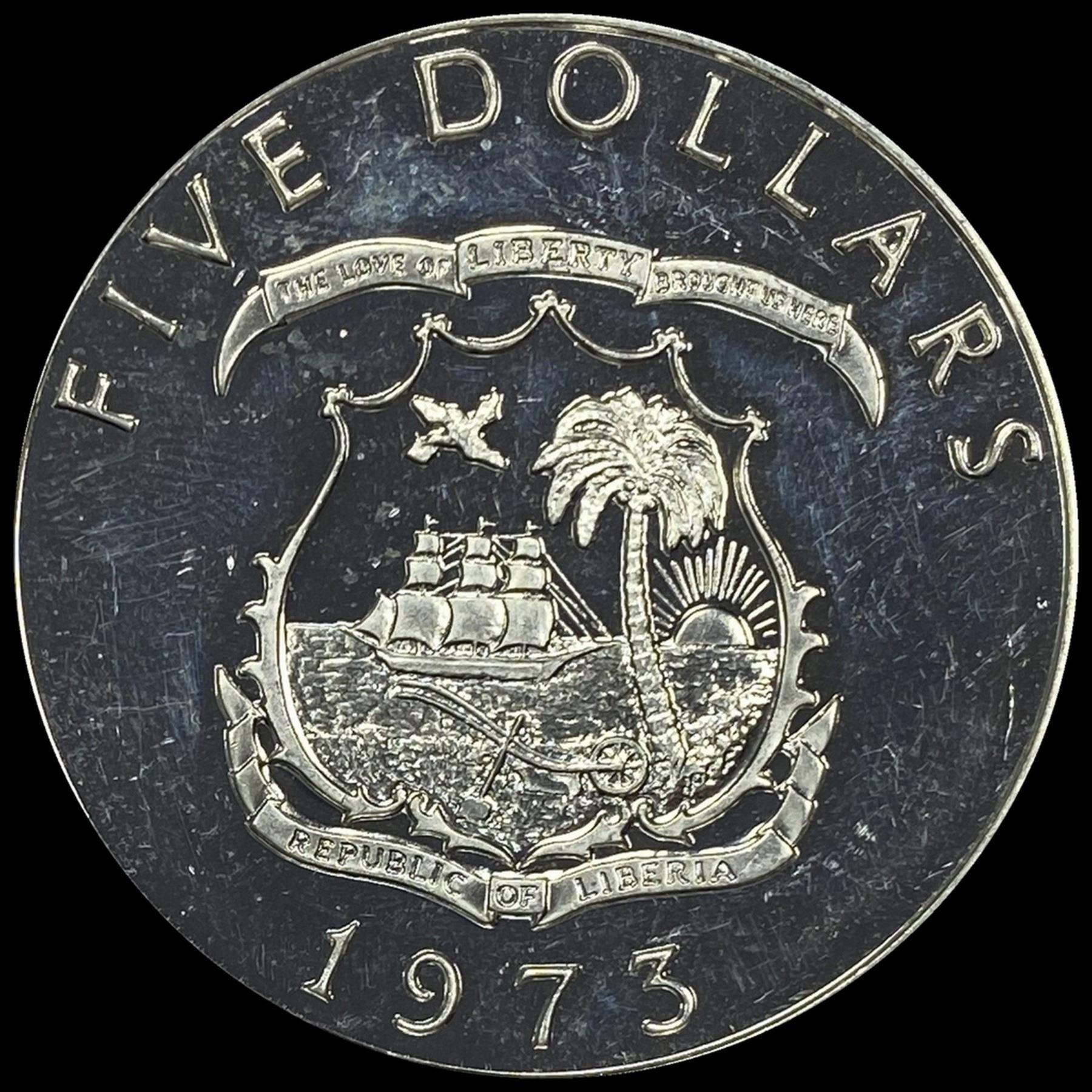 1973 Liberia Silver 5 Dollar UNCIRCULATED