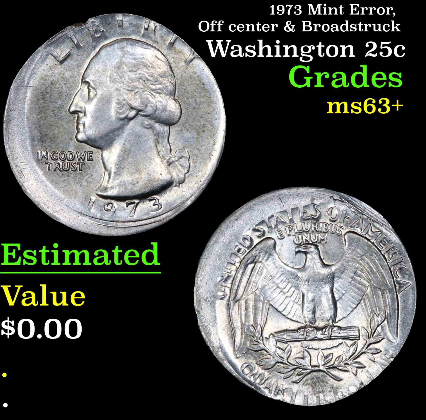 1973 Mint Error, Off center & Broadstruck . . Washington Quarter 25c Grades Select+ Unc.
