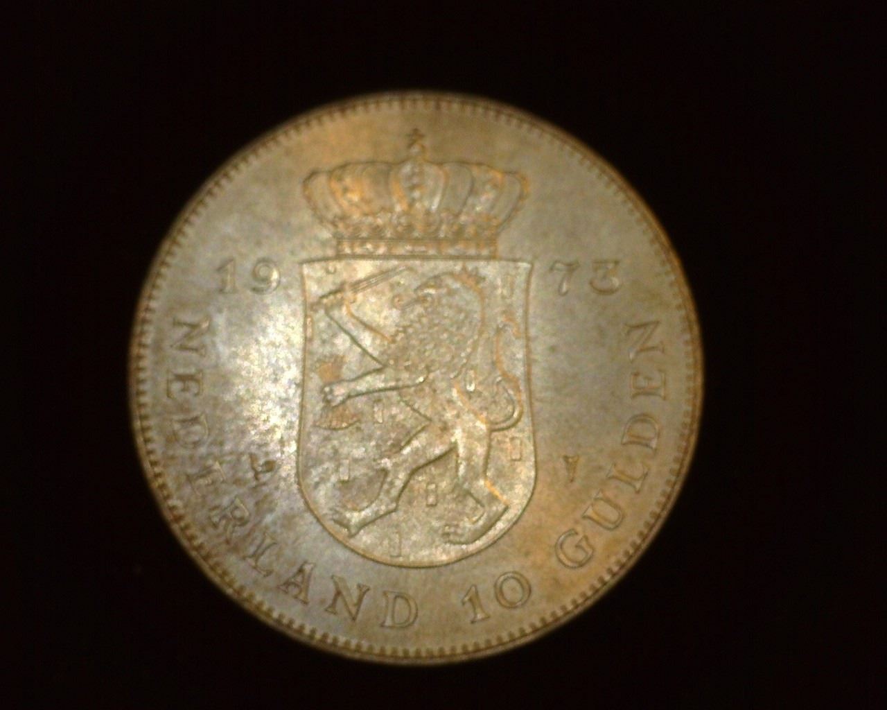 1973 Netherlands Silver 10 Gulden, Uncirculated.