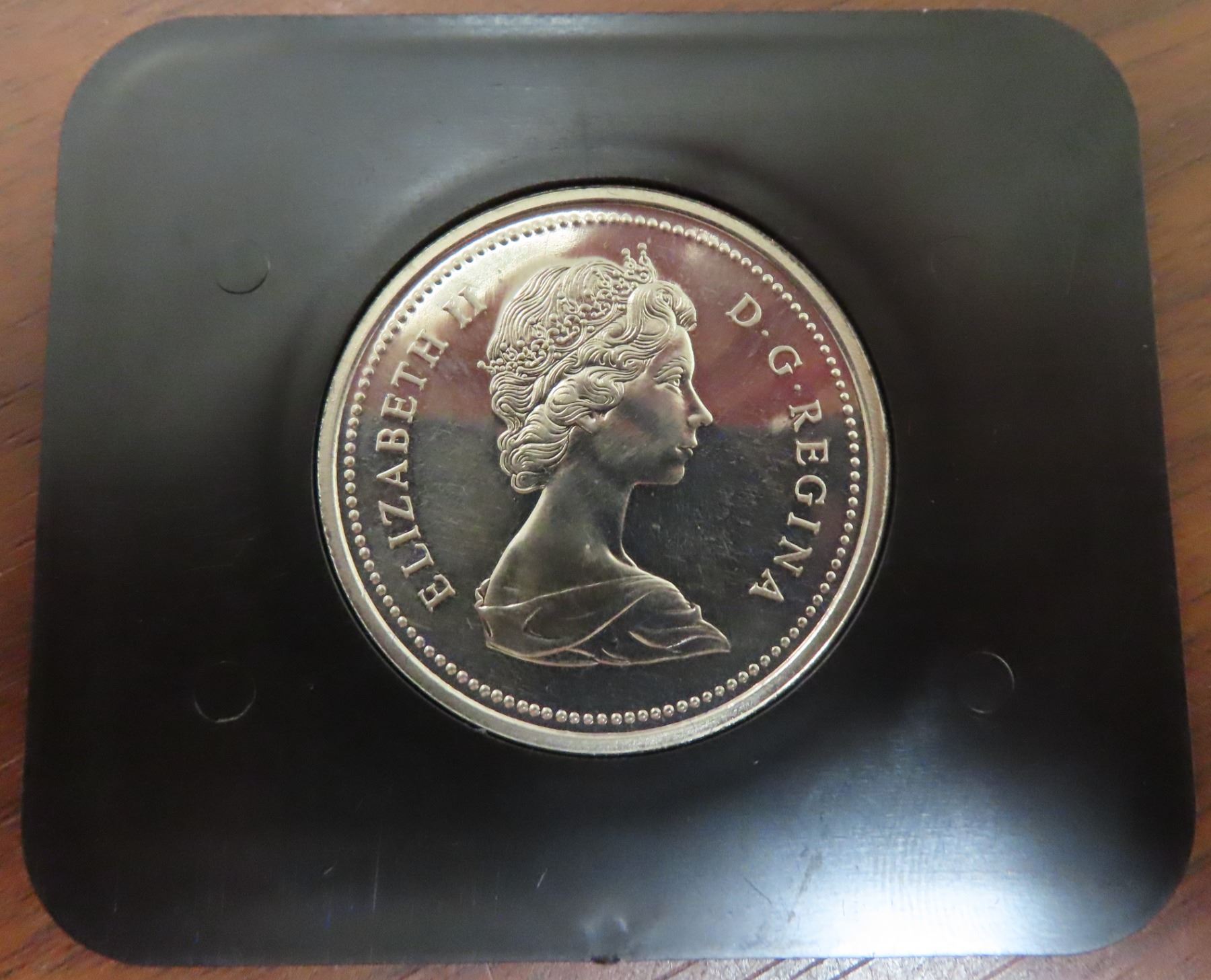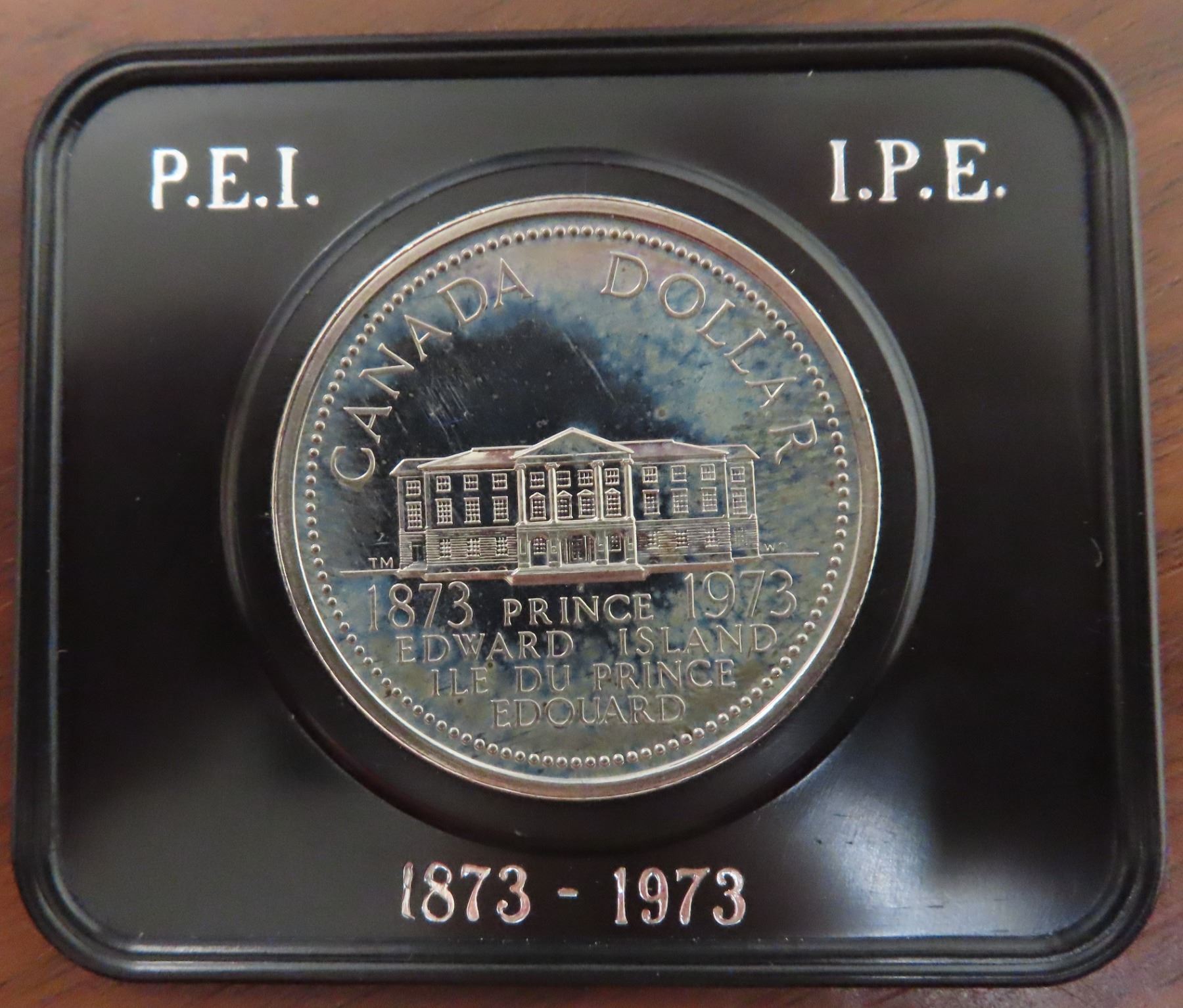 1973 Nickel Dollar. Commemorates the 100th Anniversary of PEI joining Canada. Specimen. House in its original Royal Canadian Mint blue clamshell case of issue.