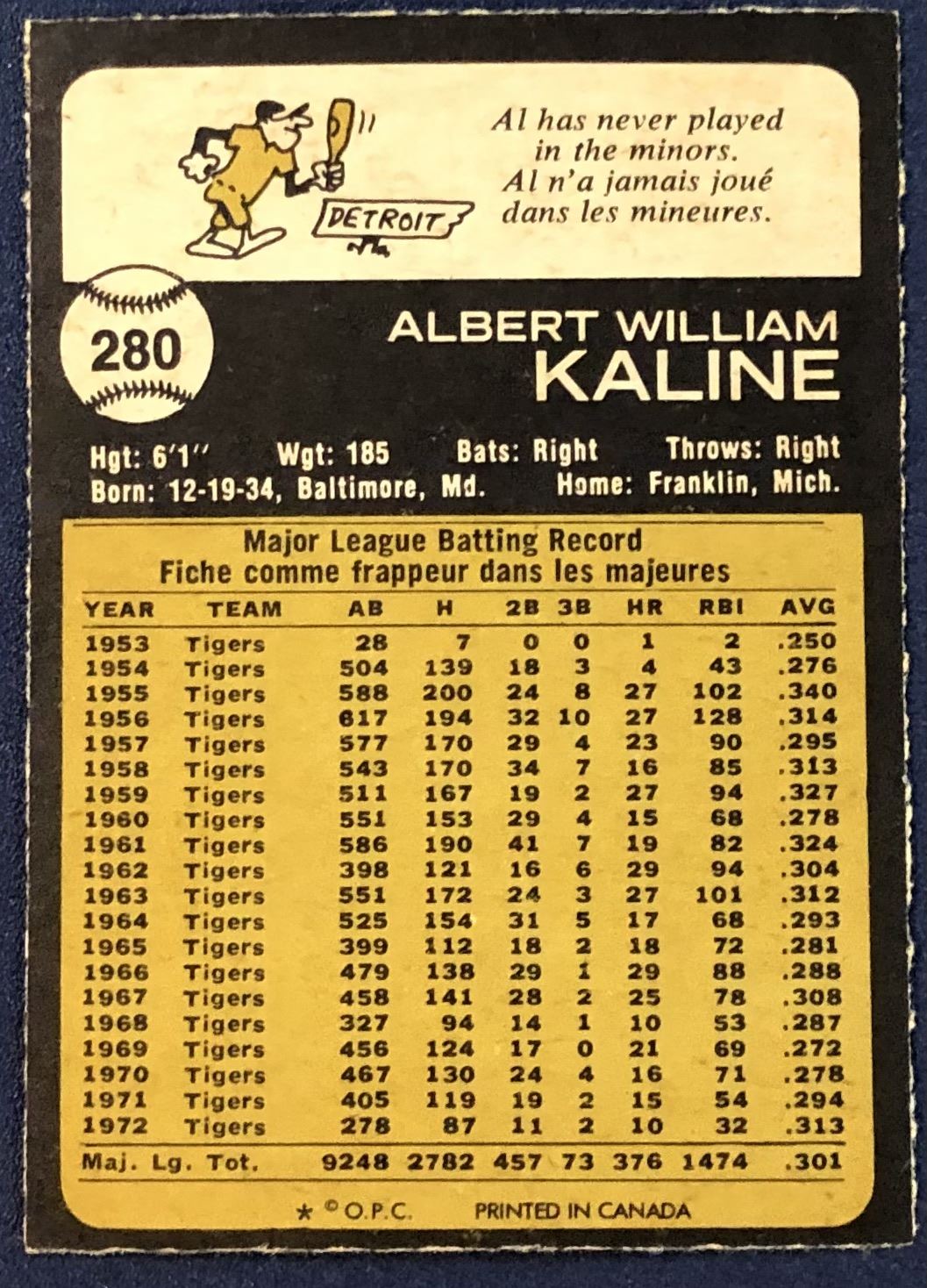 Card#280 vintage, MLB, baseball, OPC, hall of fame