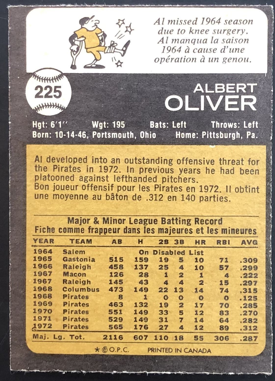 Card #225 OPC, vintage, MLB, baseball